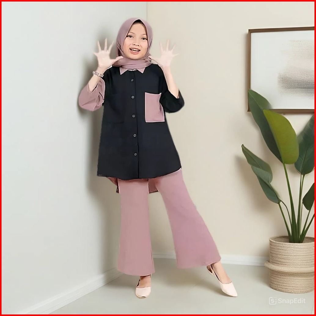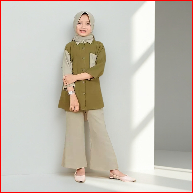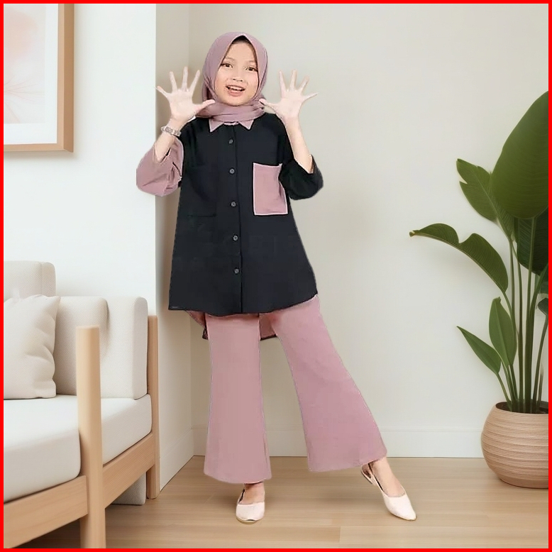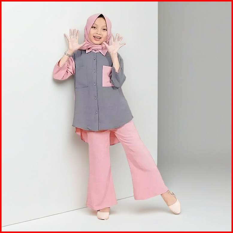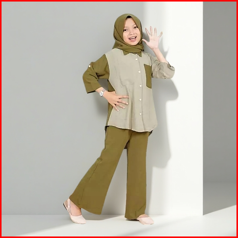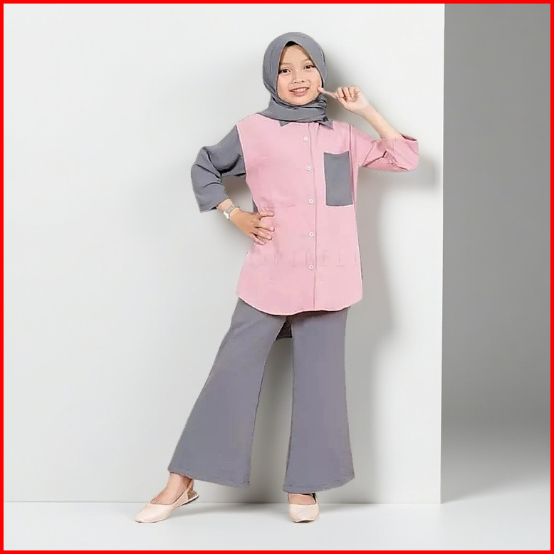 Mra - Baju Stelan Anak Fashion Free Hijab Usia 8-12 Tahun Baju Anak Perempuan Bahan Crinkle Stelan Anak Perempuan Terbar
