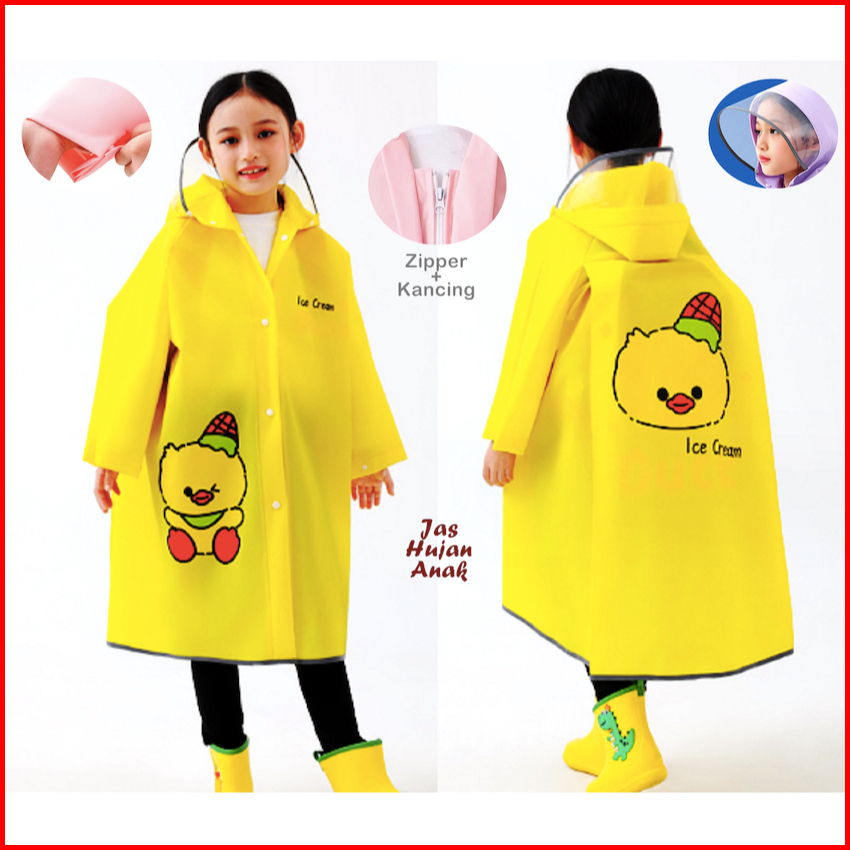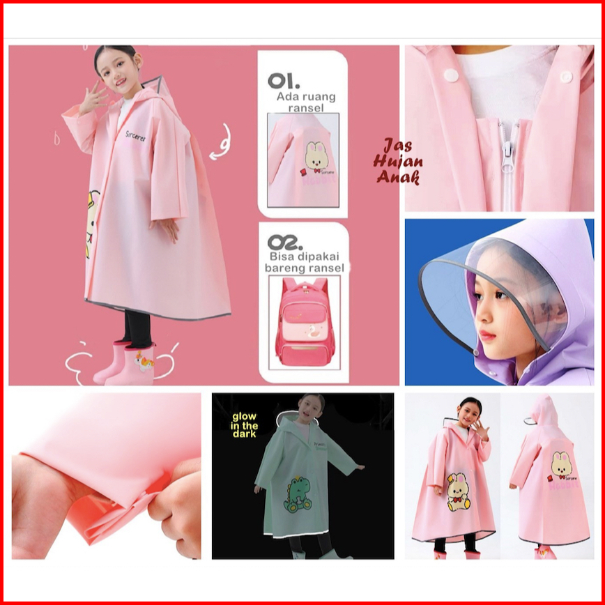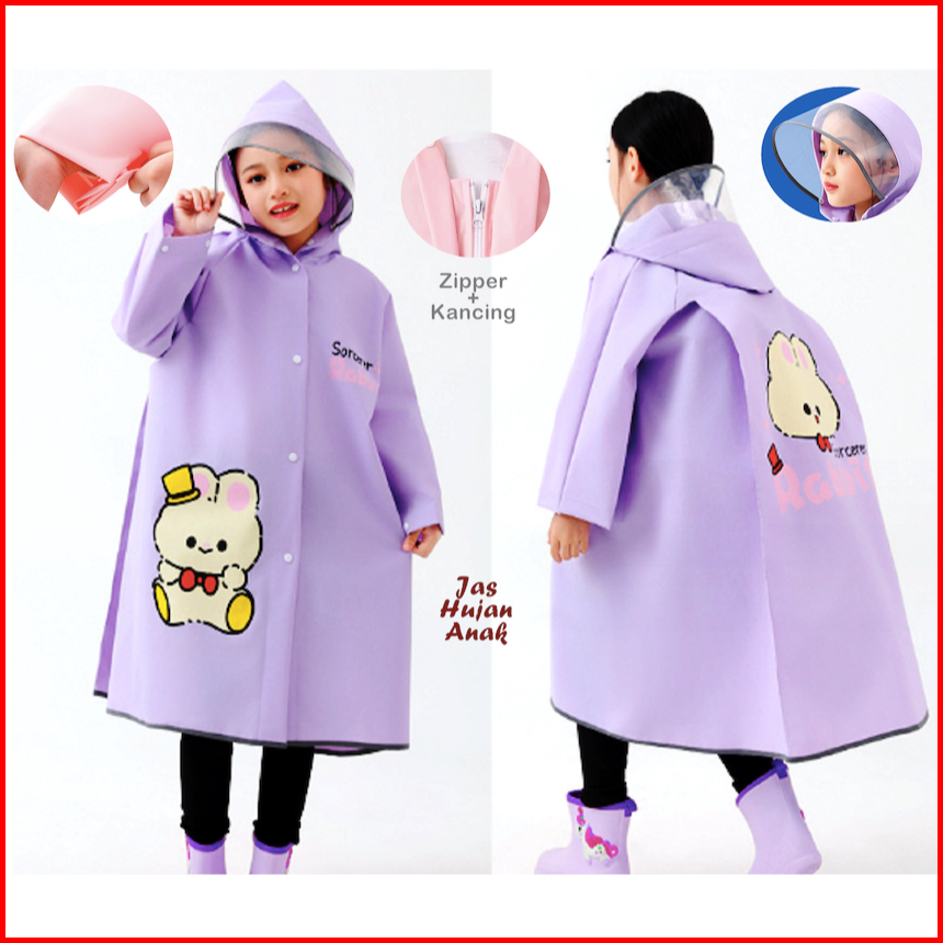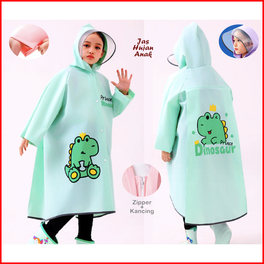 Zipper Jas Hujan Sor Rabbit Prince Dinosaur Model Resleting Dan Kancing Ada Ruang Ransel Kids Raincoat