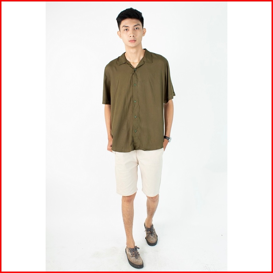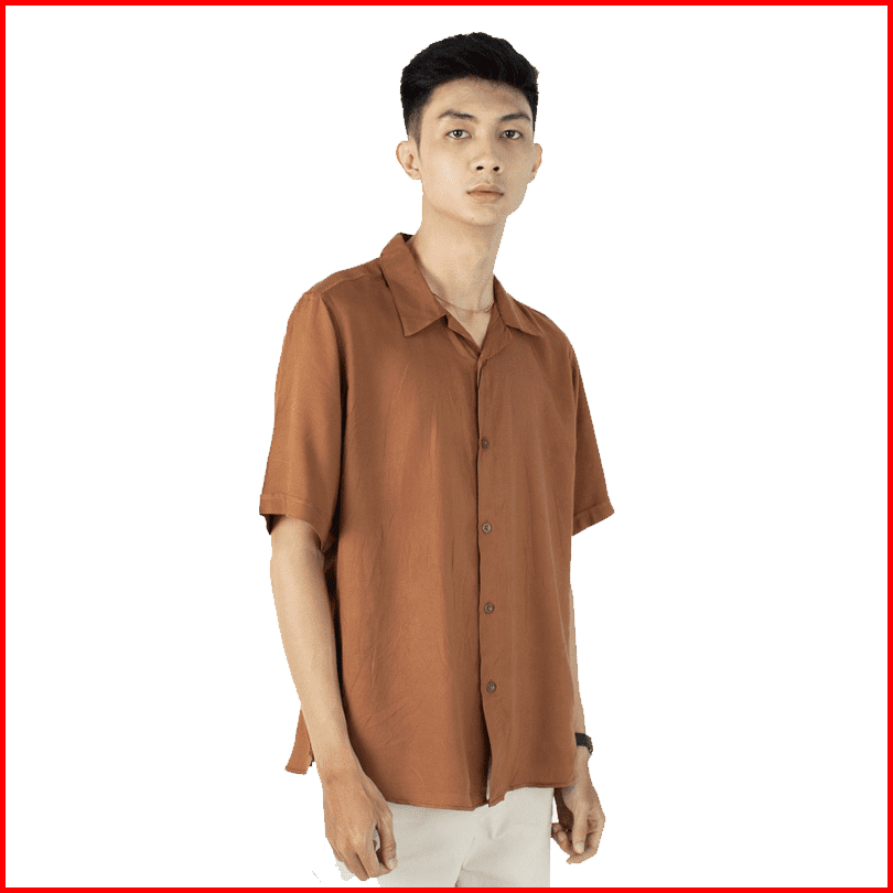 Fortklass Kemeja Rayon Polos Pria Lengan Pendek Hem Pria Kemeja Pantai Santai Earth Tone Distro