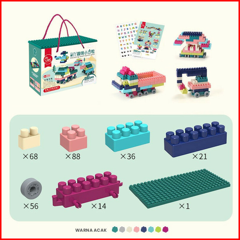 Ohsome - Mainan Brick Balok Susun Anak Diy 280pcs Bahan Abs Kuat Tahan Lama