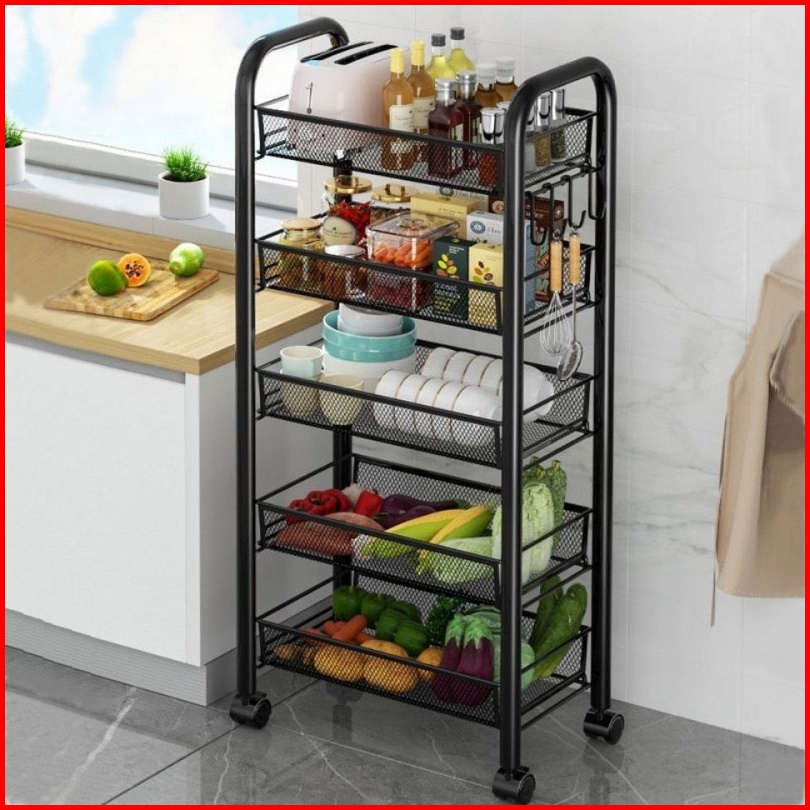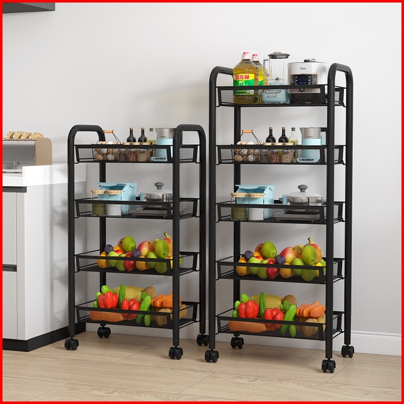 Zenrak Lantai Beroda Rak Penyimpanan Serbaguna Rak Ruang Tamu Tingkat Putih Rak Salon