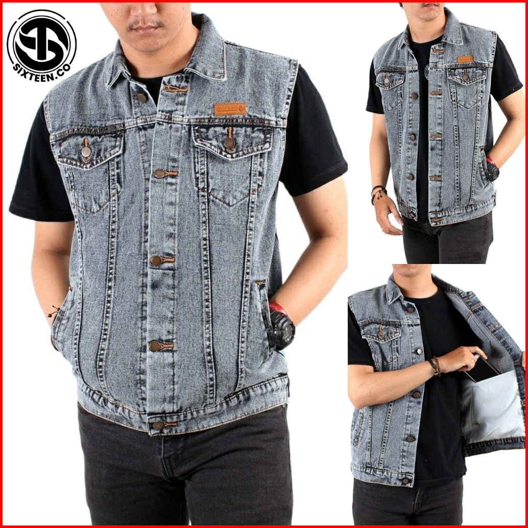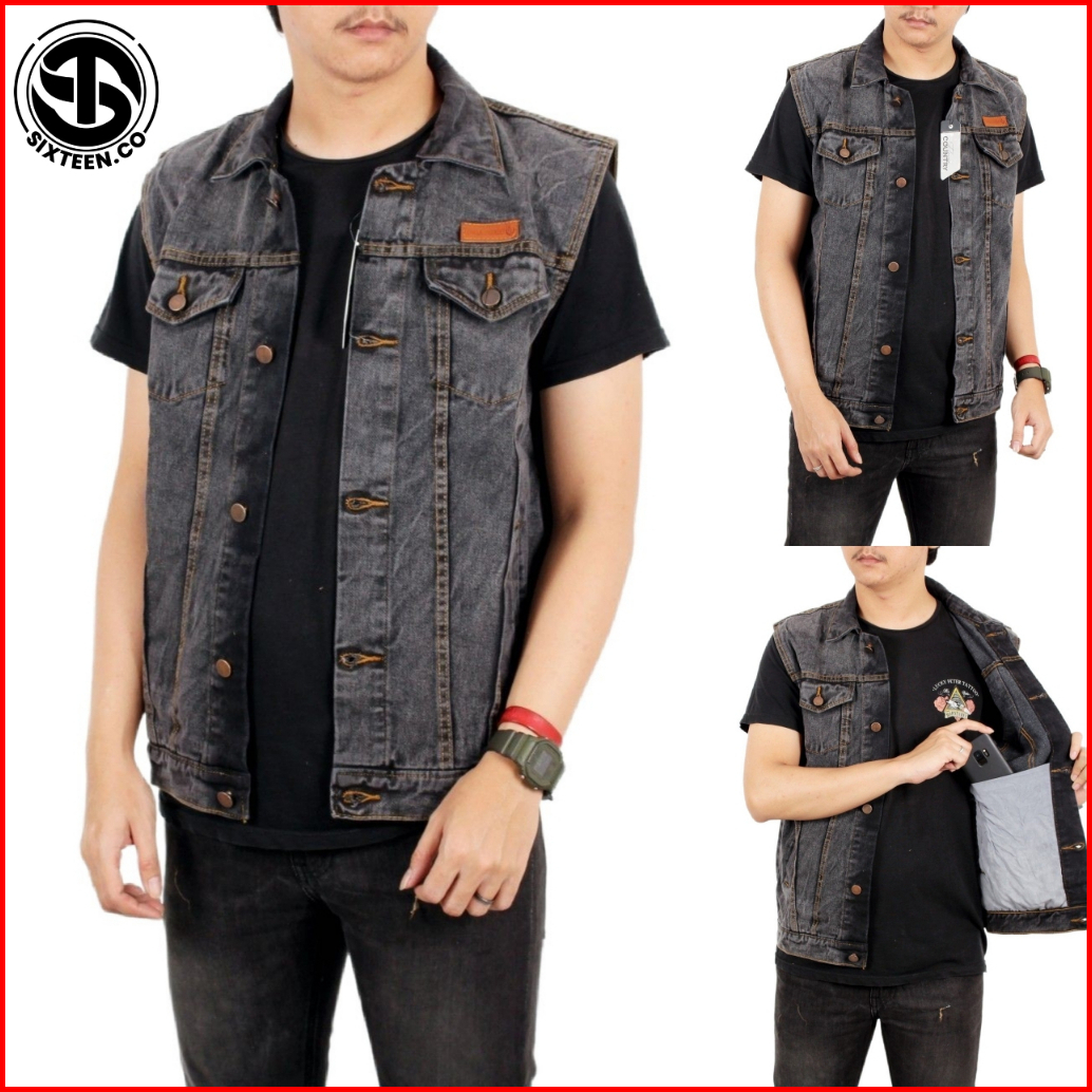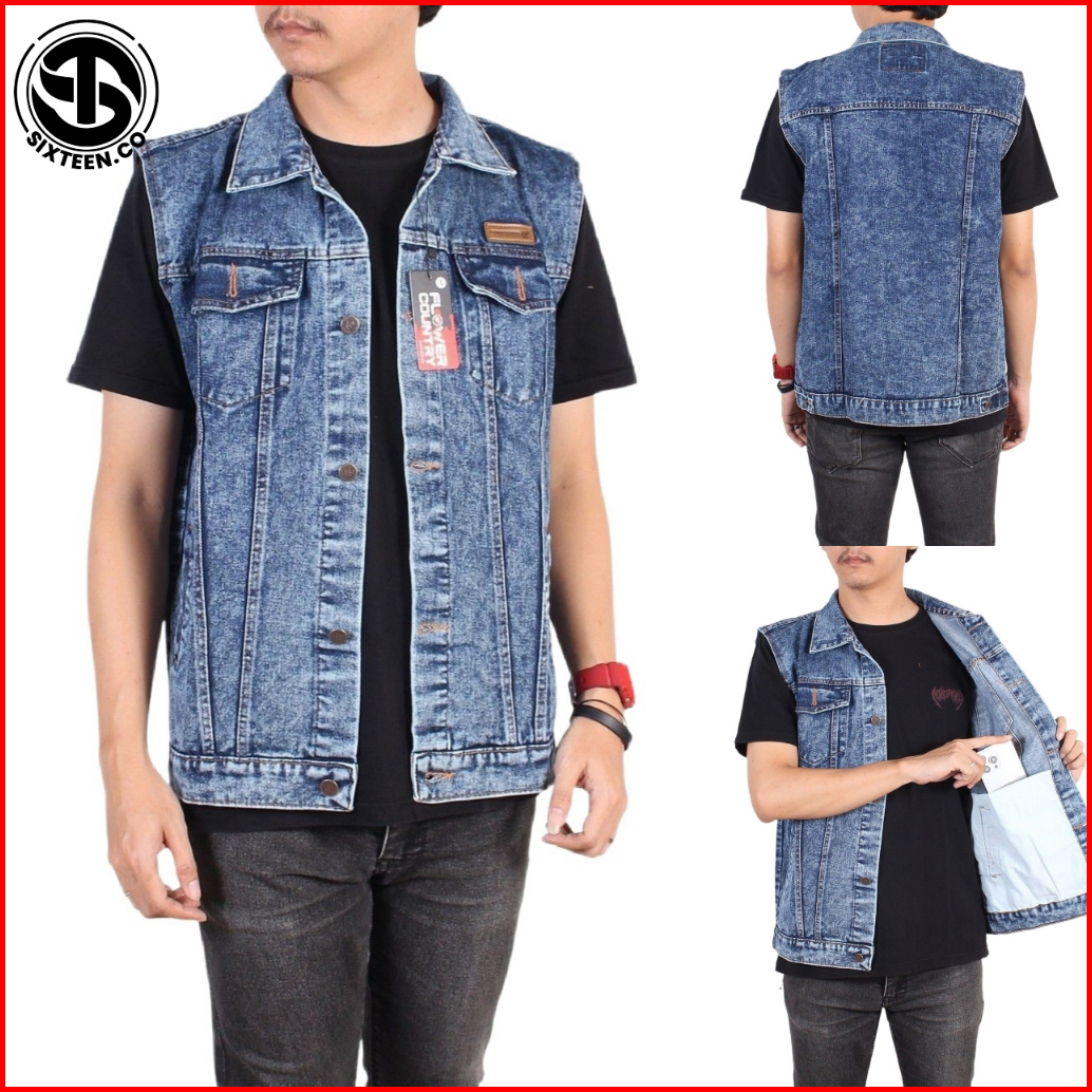 Sixteen - Rompi Jeans Pria Big Size Rompi Motor Klasik Denim Sandwash Gray Black Flower Country