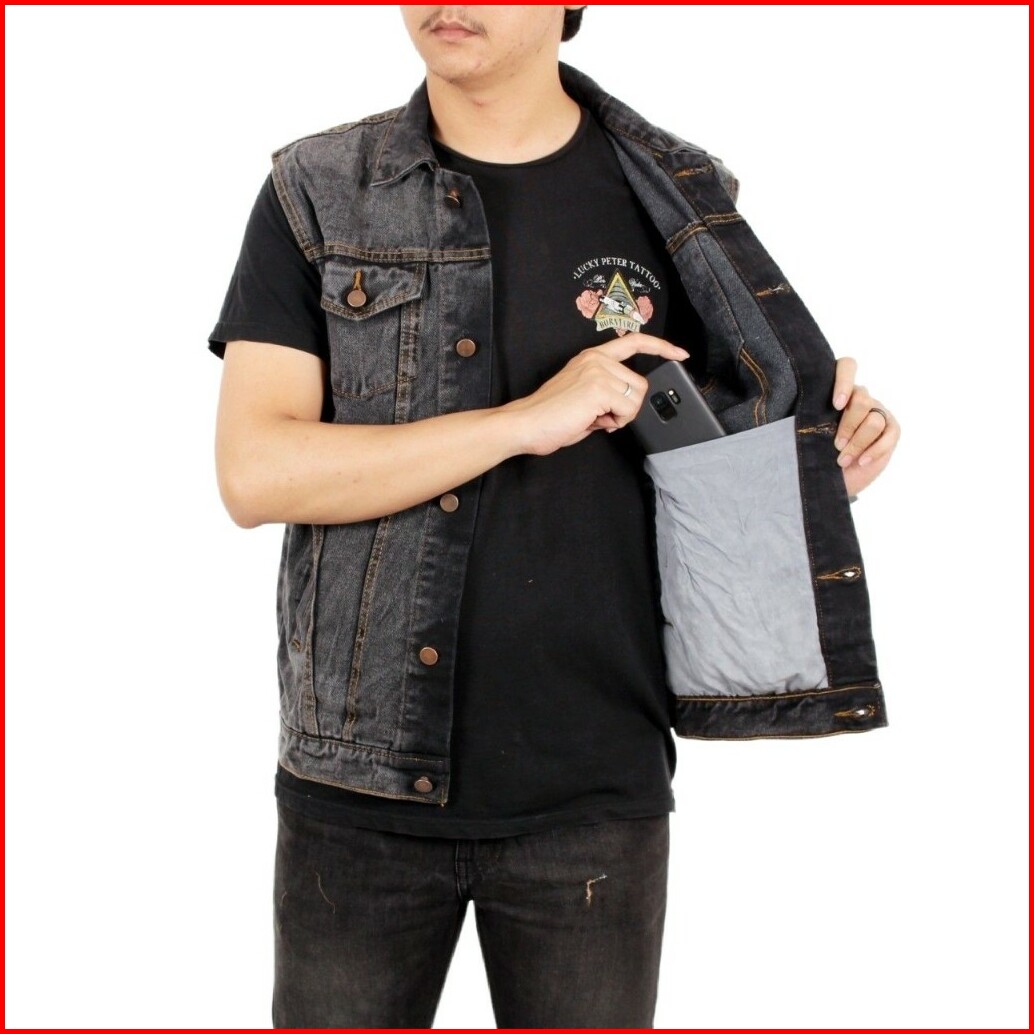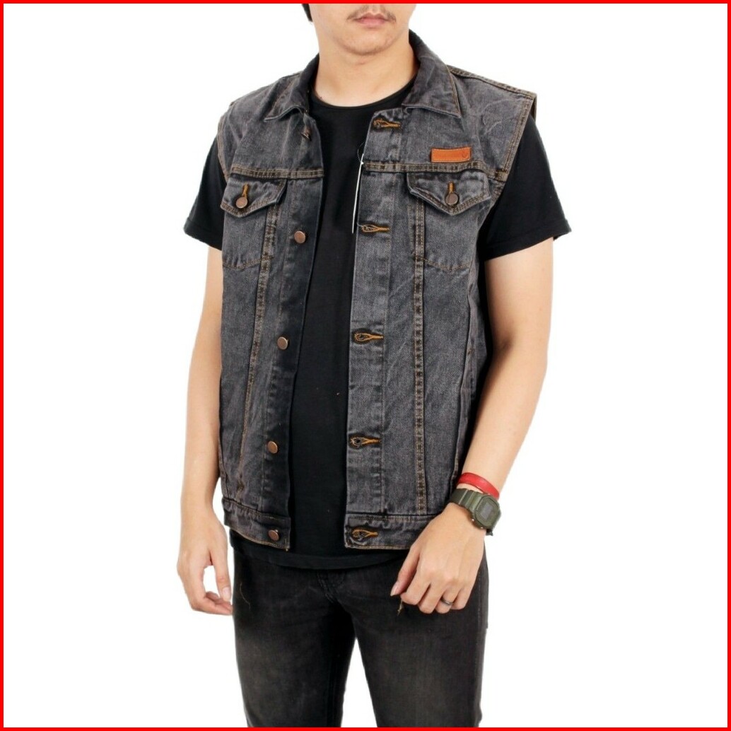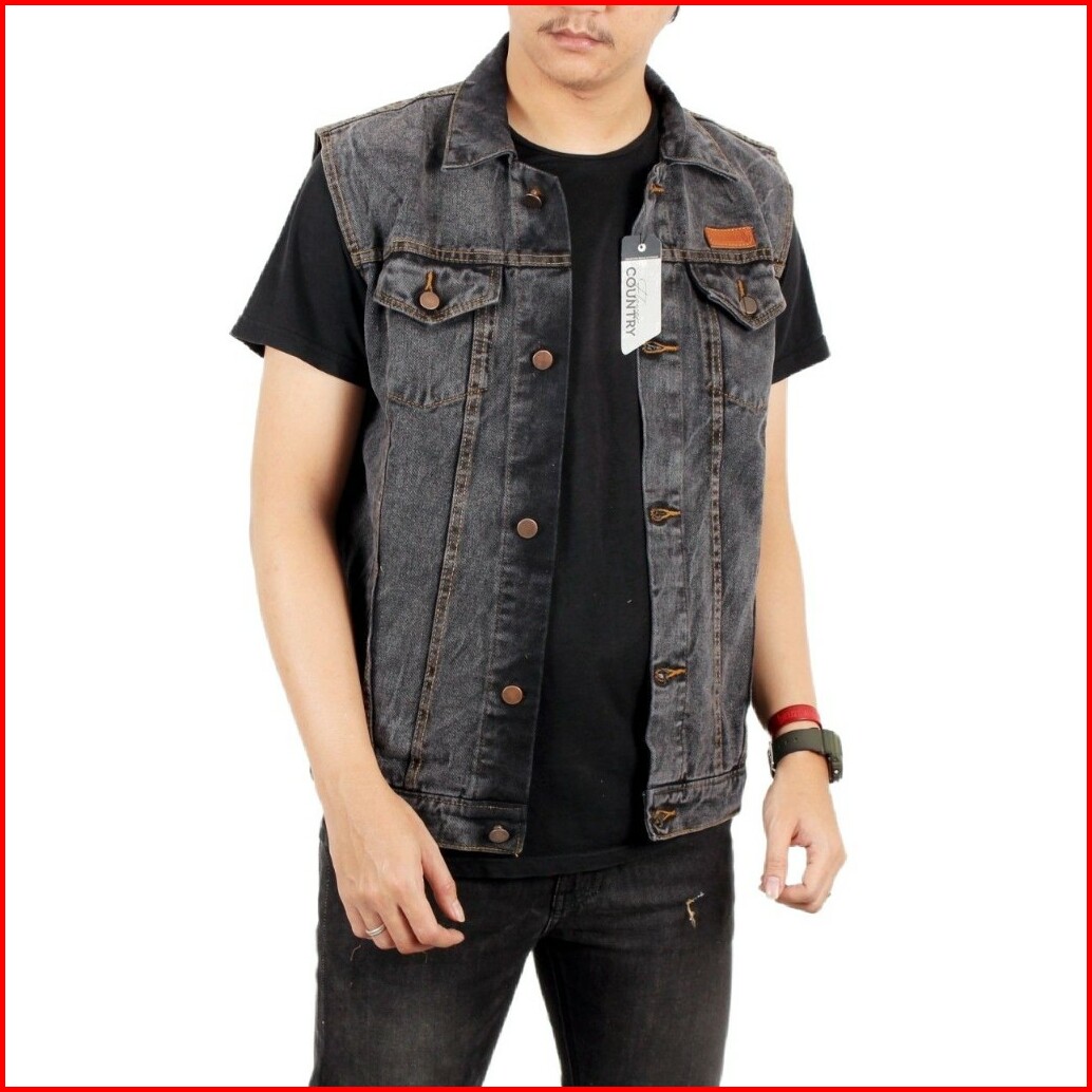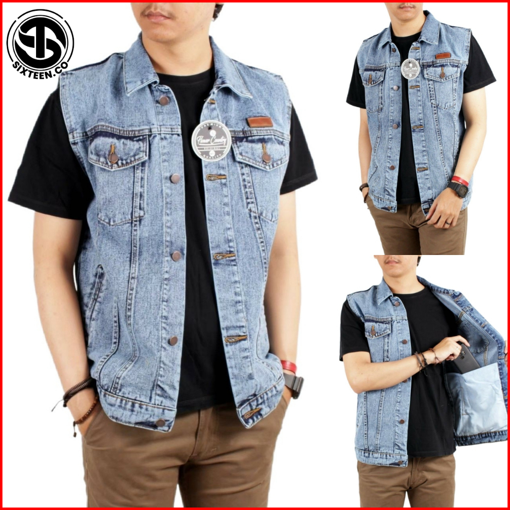 Sixteen - Rompi Jeans Pria Big Size Rompi Motor Klasik Denim Sandwash Gray Black Flower Country