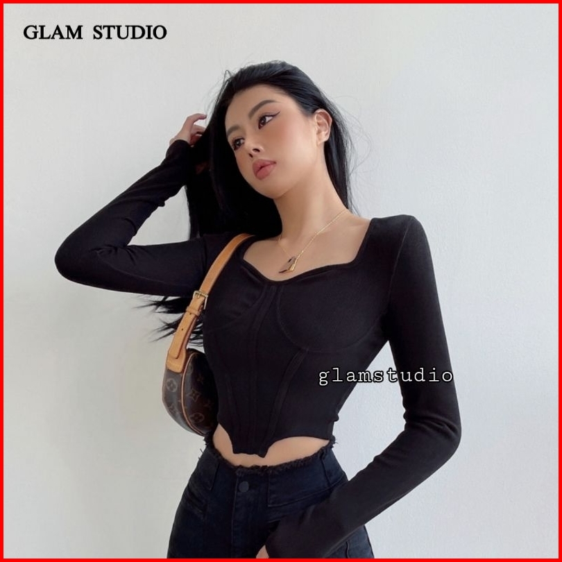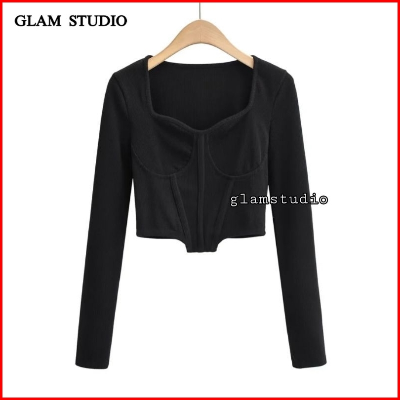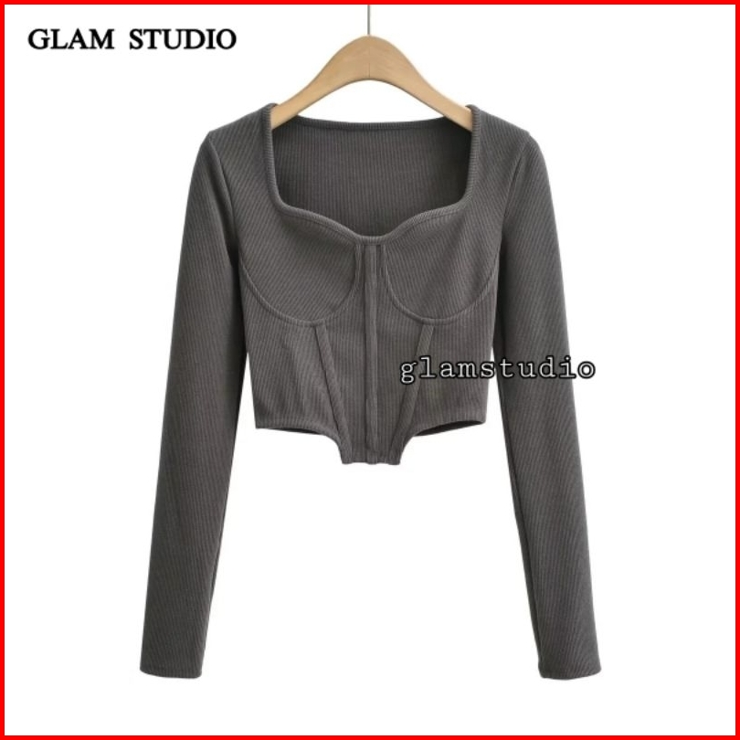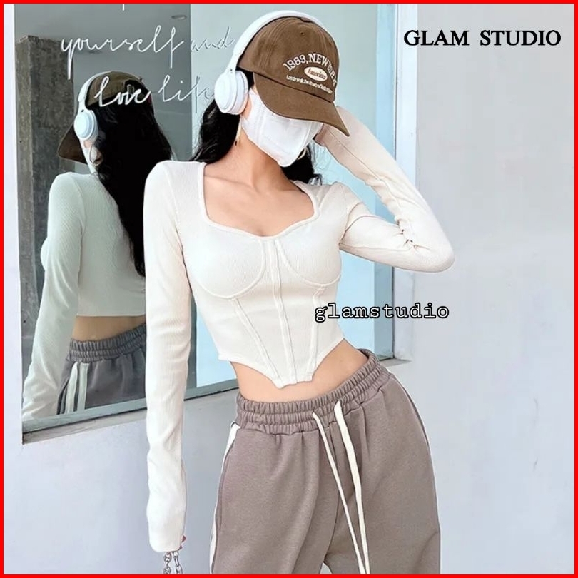 Glamstudio - Crop Top Lengan Panjang Crop Top Long Sleeve Ctls 013 S M L Xl