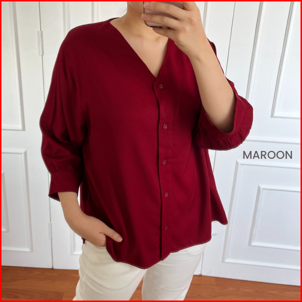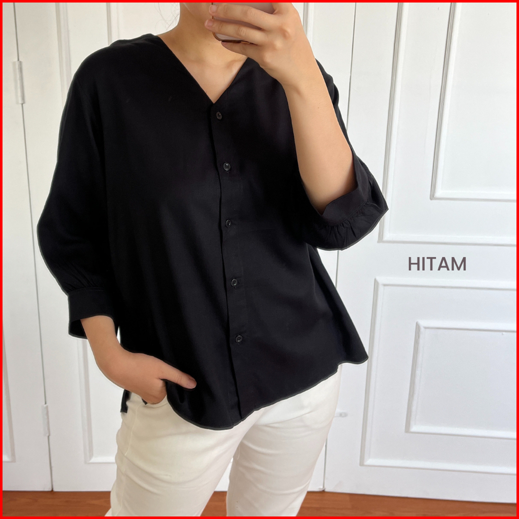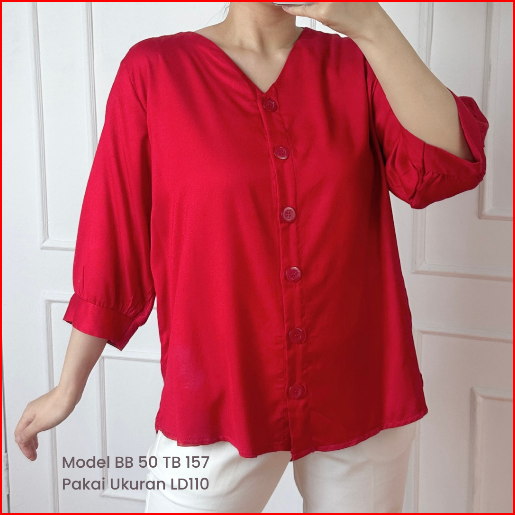 Clara Ld110 120 130 Blouse V-neck Lengan 3 4 Rayon Twill Premium Busui-friendly Jumbo Bigsize