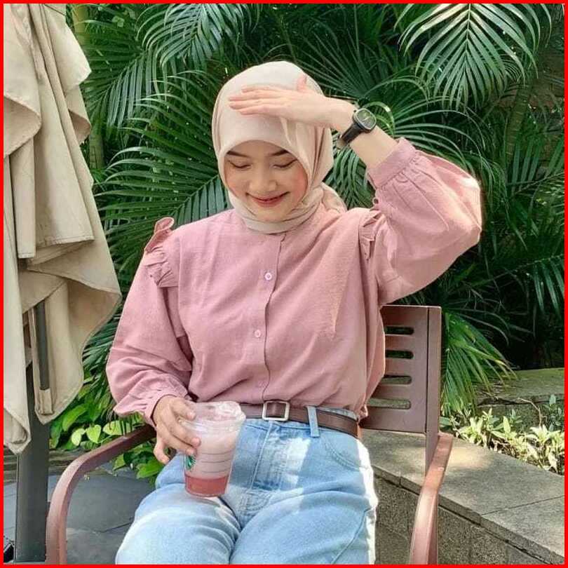 Yurim Blouse Ruffle-atasan Wanita-kemeja Linen Wanita Basic Lengan Panjang