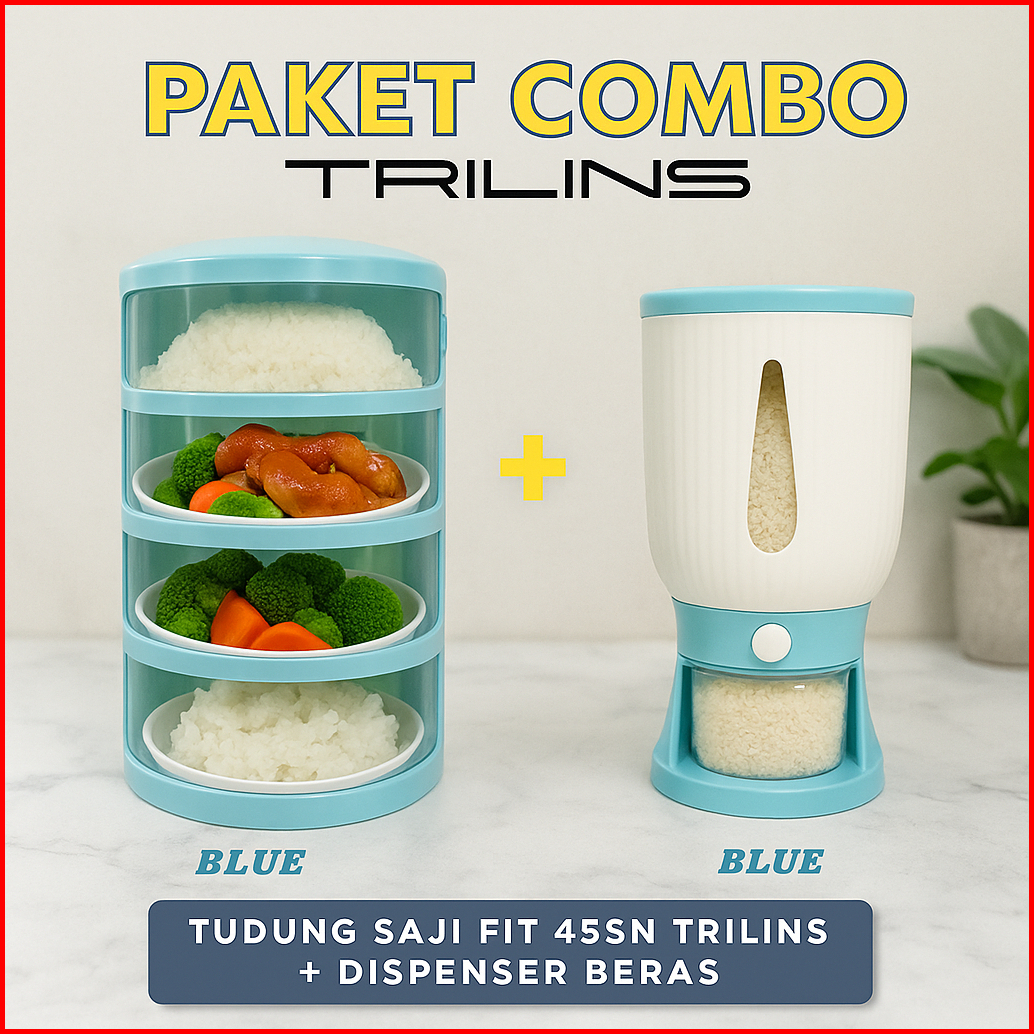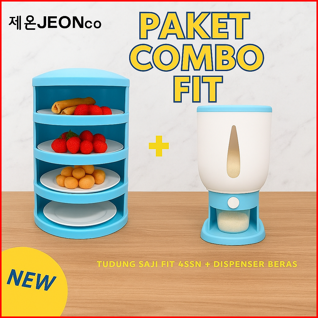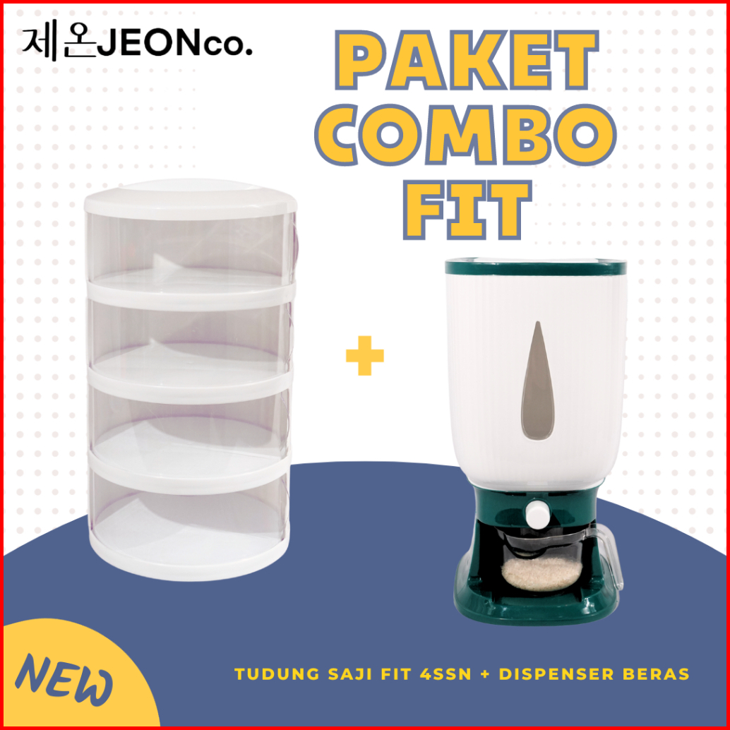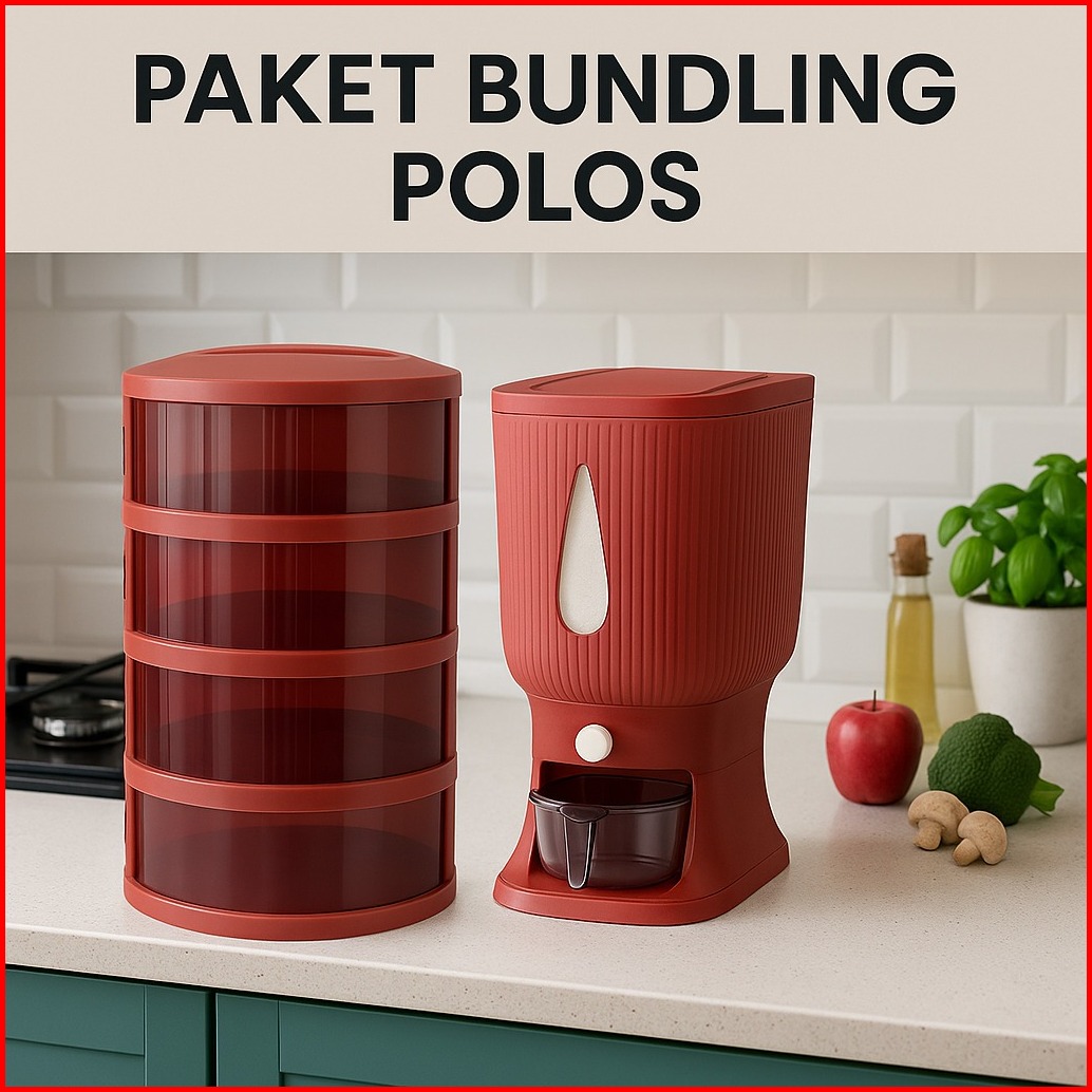 Paket Hampers Combo Fit Tudung Saji Fit 4 Susun Lebih Tebal Food Grade Dispenser Beras Modern 10kg