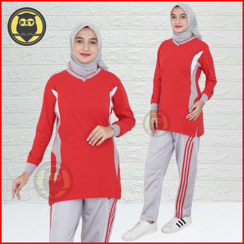 Baju Senam Wanita Setelan Muslimah Kaos Olahraga 1 Set Wanita Stelan Trening Baju Olahraga Muslim