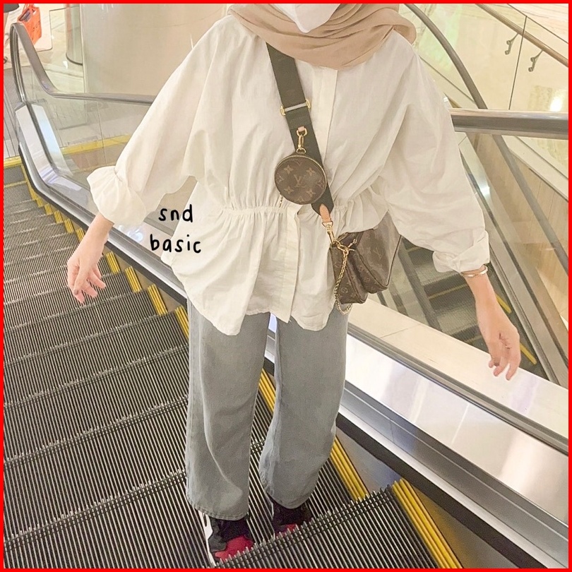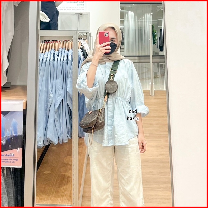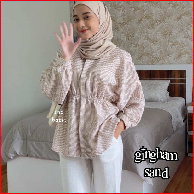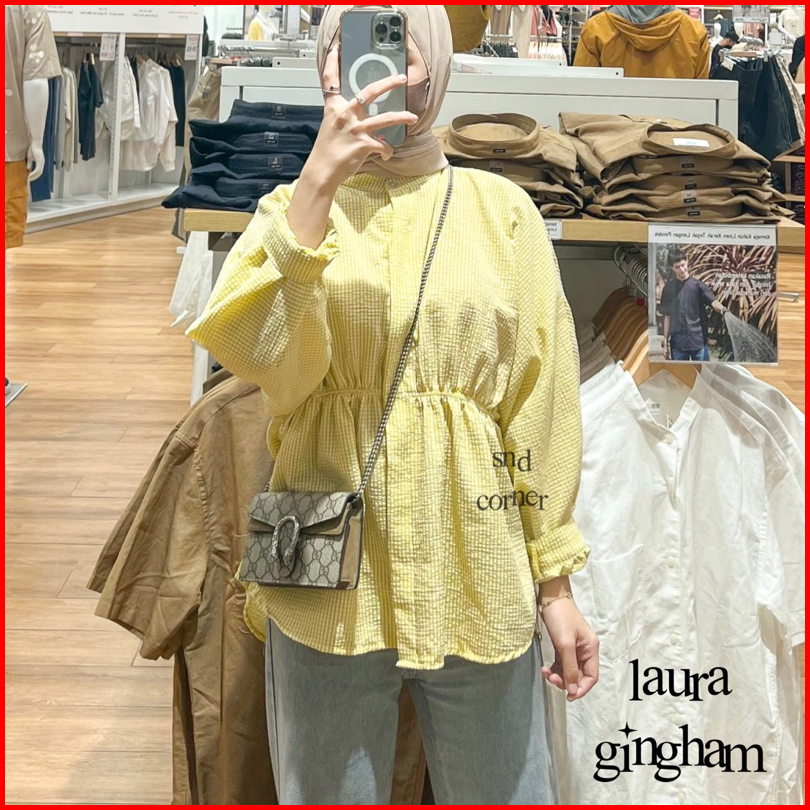 Laura Cotton Top Blouse Atasan Tartan Gingham Blus Kemeja Kotak Kerut Katun Poplin