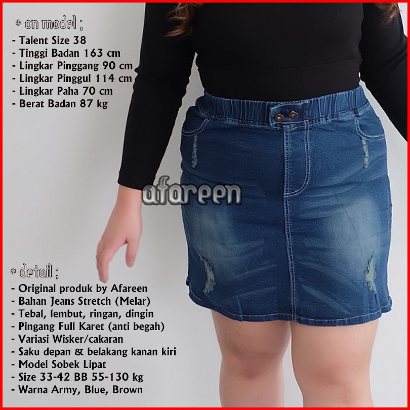 Afareen - Rok Mini Jeans Wanita Jumbo Rok Pendek Jeans Melar Pinggang Karet Skrit Korean Size 33-42