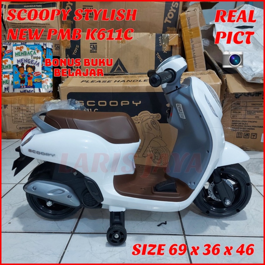 Bonus Buku Motoran Aki Anak Pmb K 611 C Scoopy Stylish Motor Mainan Aki Motor Aki Pmb K611c Terbaru Pmb