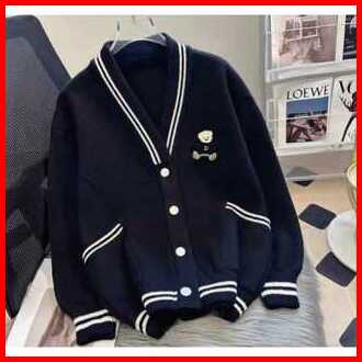 Cardigan Outher Wanita - Cool Bear Bordir Sweater Cardigan Korean Style