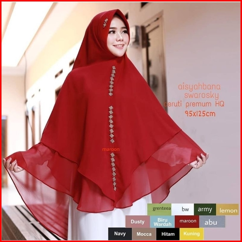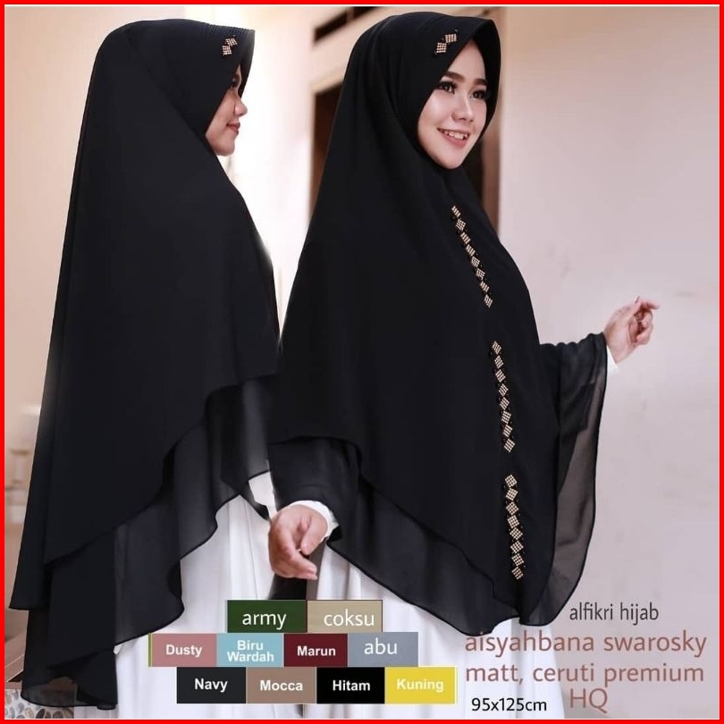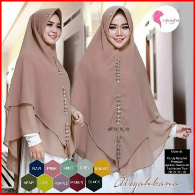 Jumbo 2 Layer Aisyahbana Swarovski Ceruty Khimar Syar I Jumbo Pad Hijab Termurah Jilbab Kekinian Fashion Muslim