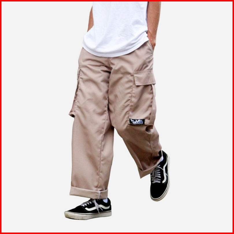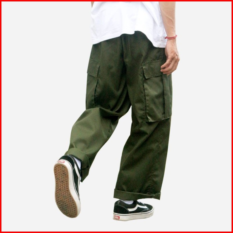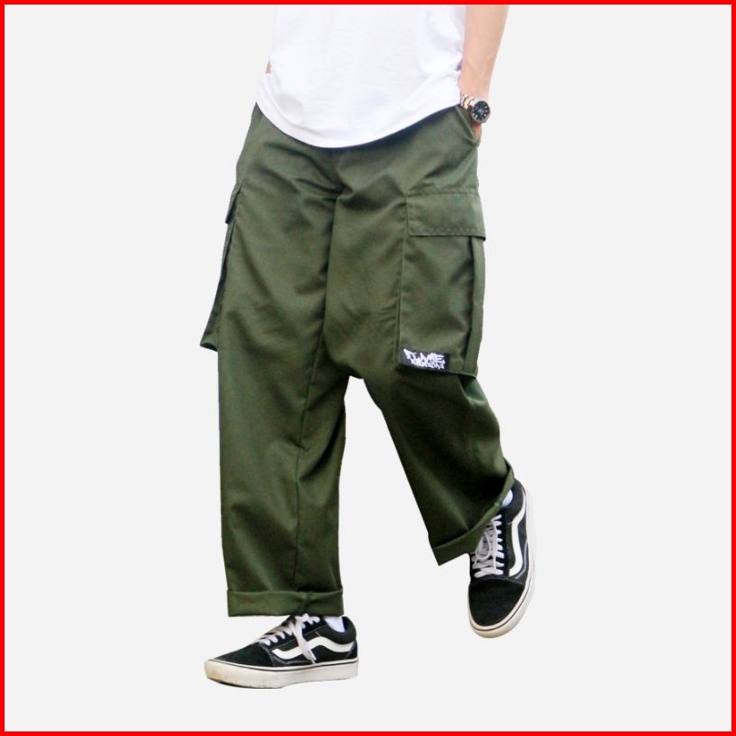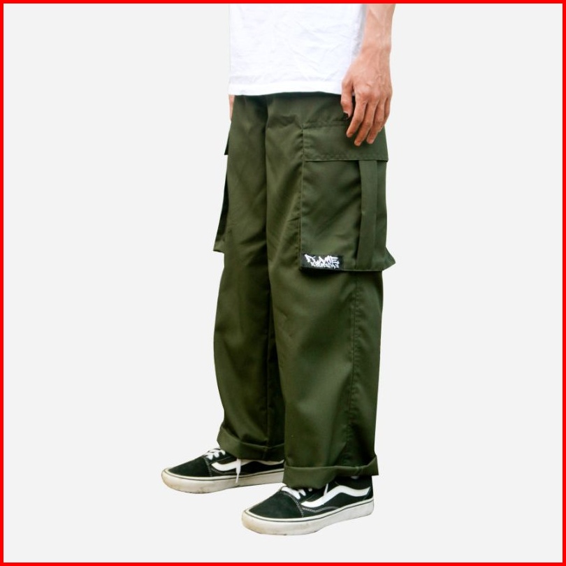 Flame Everyday - Cargo Baggy Wide Leg - Celana Cargo Baggy - Olive