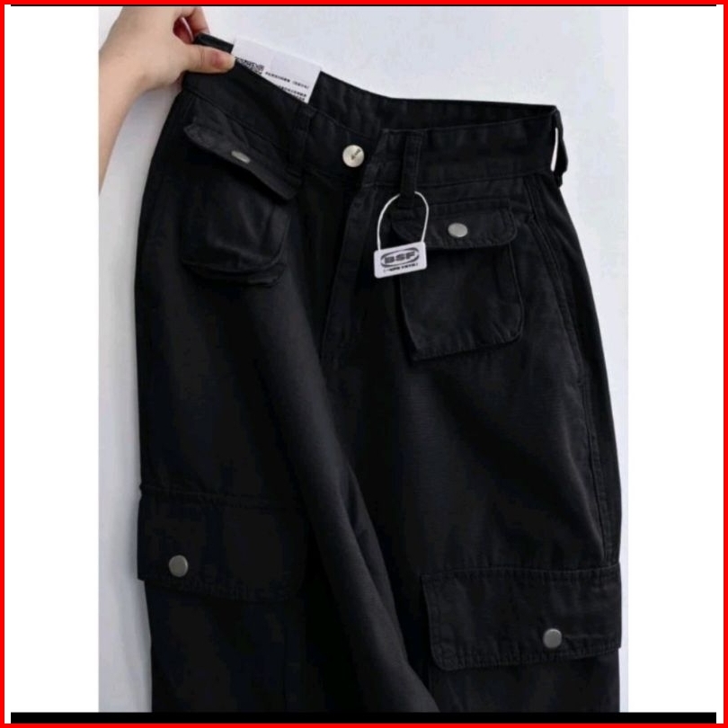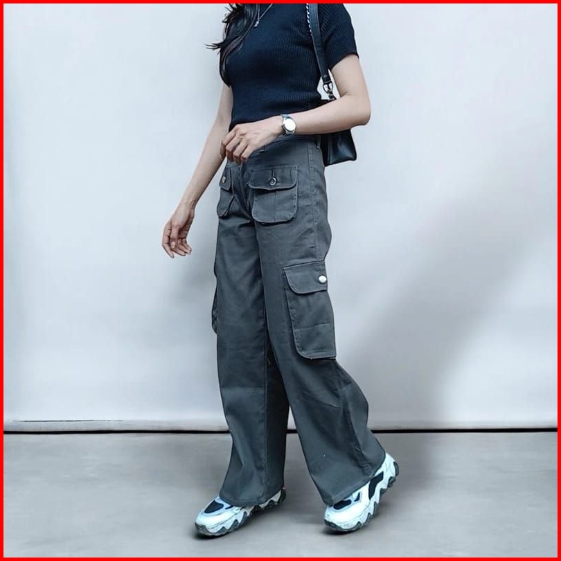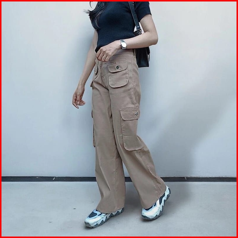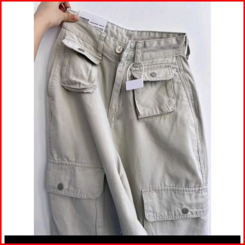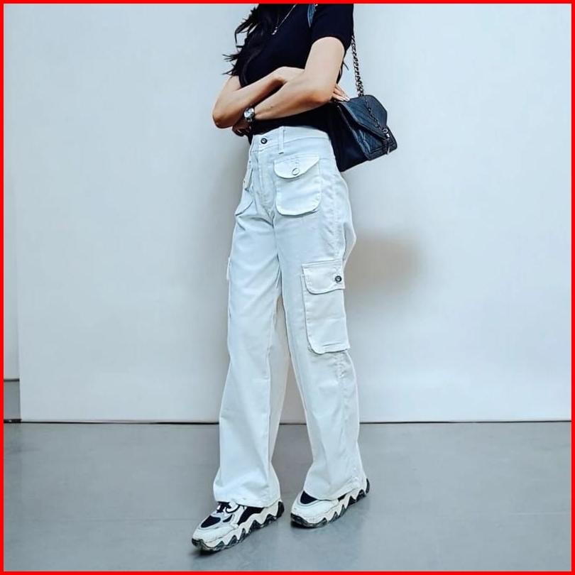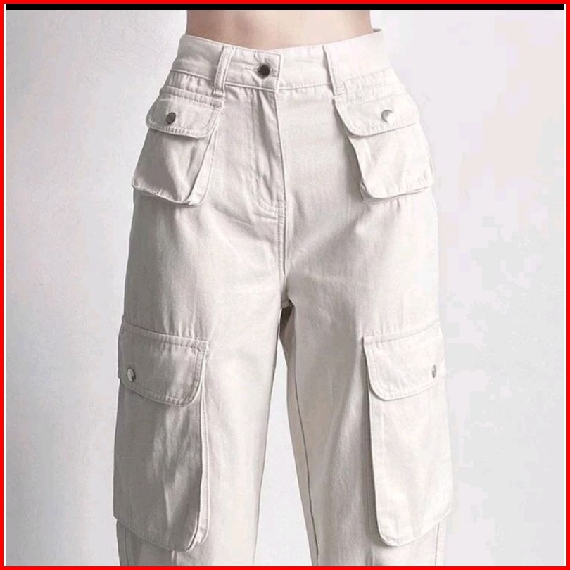 Celana Cargo Krem Highwaist Wanita-celana Cargo Denim Pasir Putih New-celana Cargo Wanita