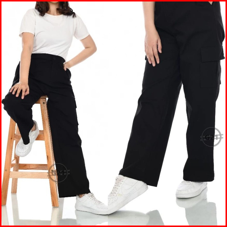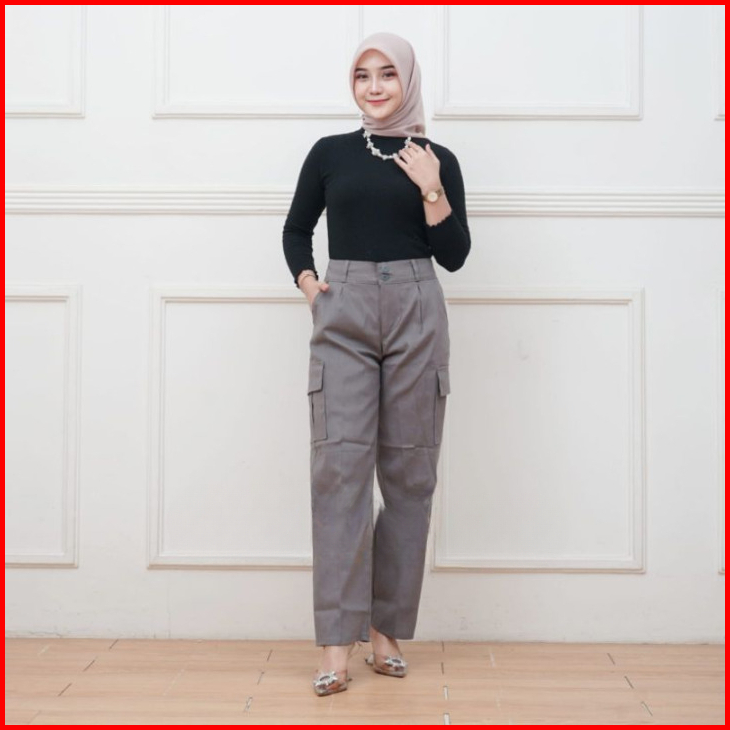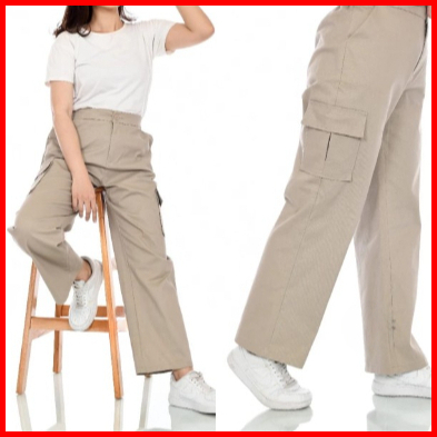 Celana Kargo Panjang Wanita Highwaist Jumbo Premium Bahan American Drill Size M L Xl Xxl Ootd Korean Style Celana Cargo