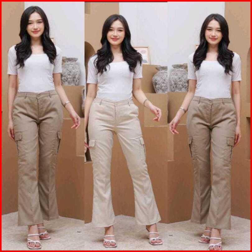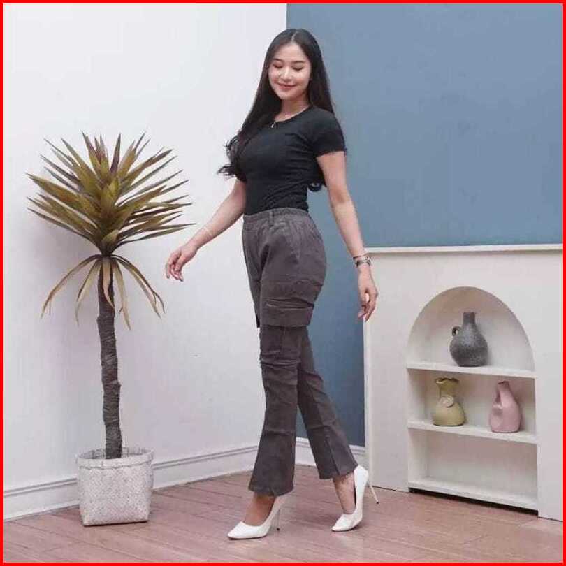 Celana Cargo Cutbray Stretch Highwaist Combed Big Size Jumbo L-xxxl
