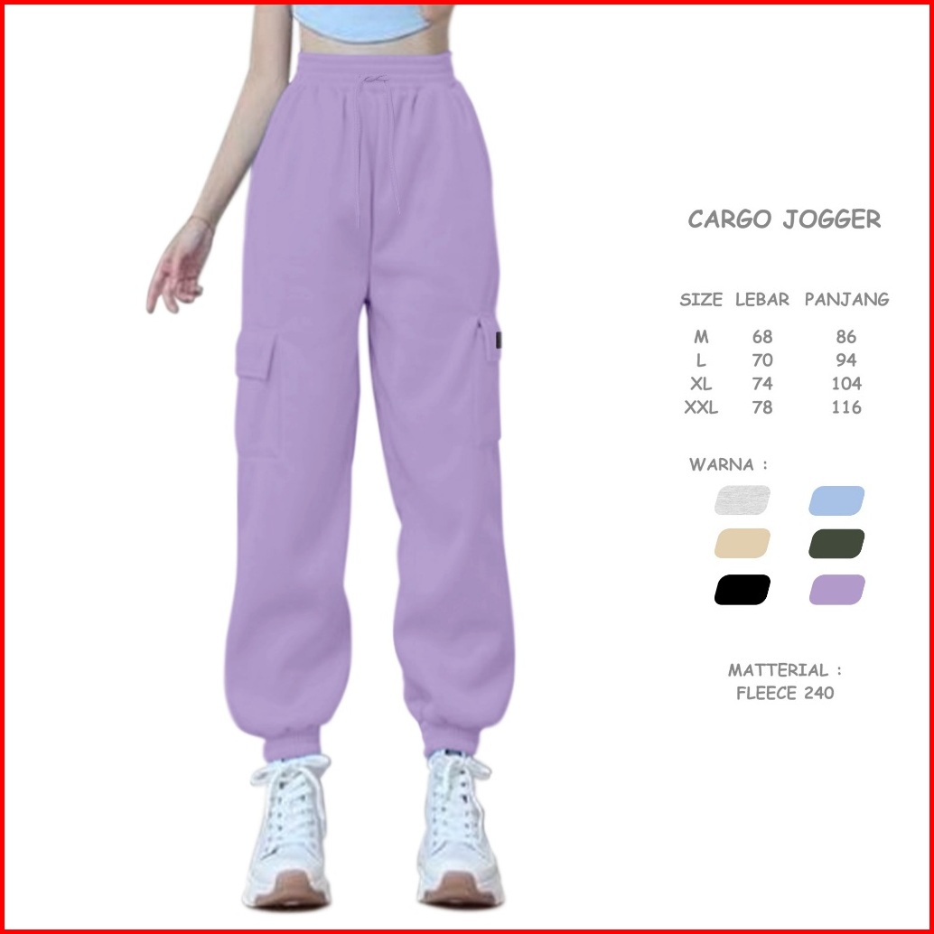 Rhid - Celana Cargo Panjang Joger Wanita Bahan Fleece Tebal Halus Nyaman Di Pakai