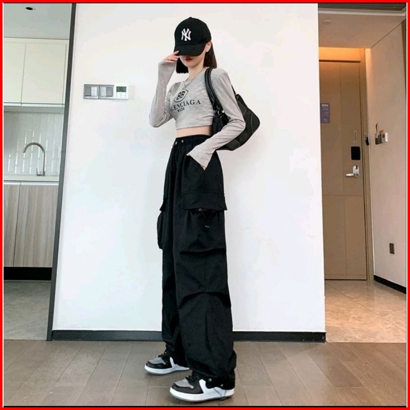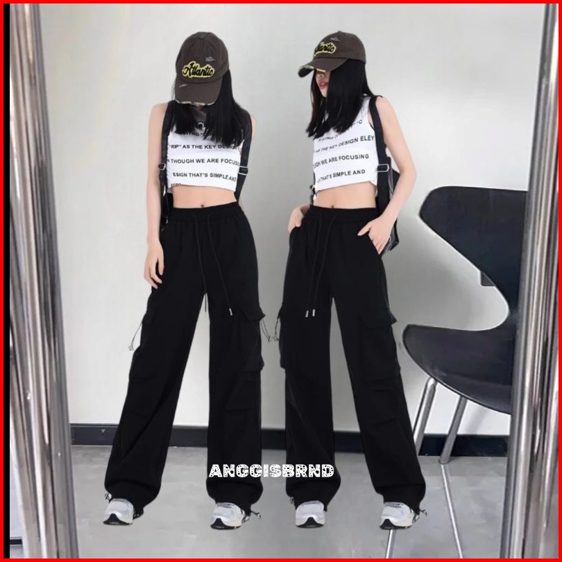 Celana Cargo Pants Serut Wanita Polos Basic Ootd Korean Style Premium