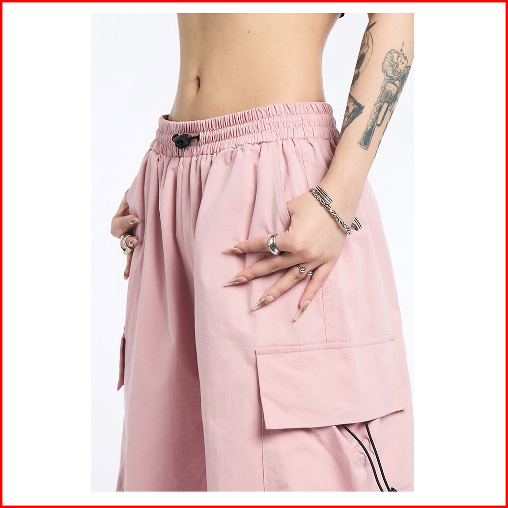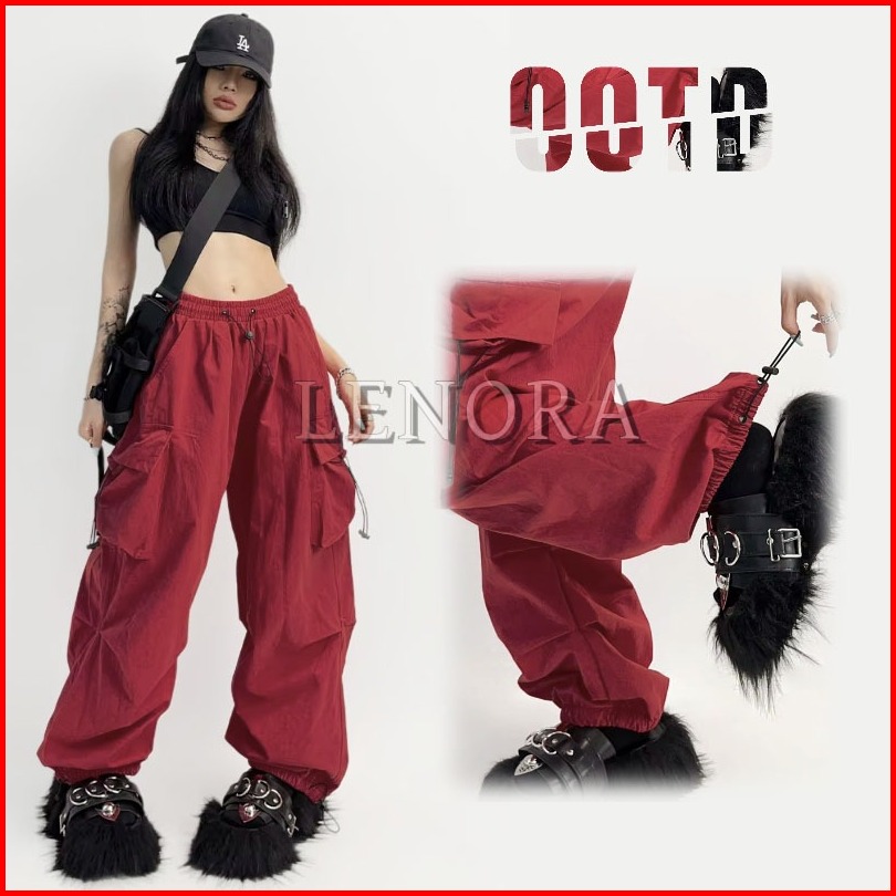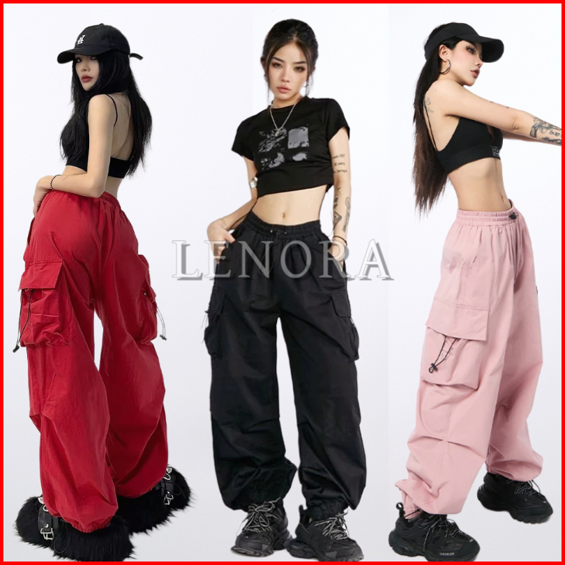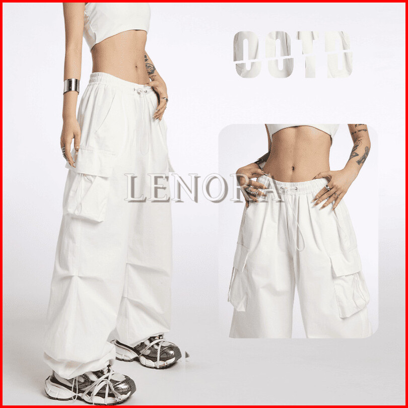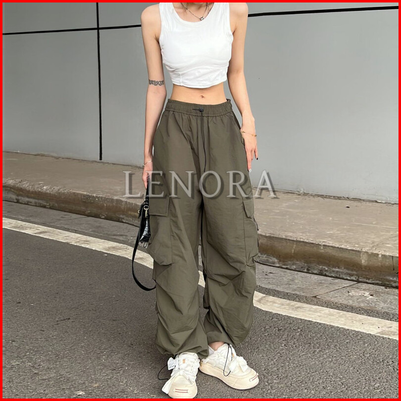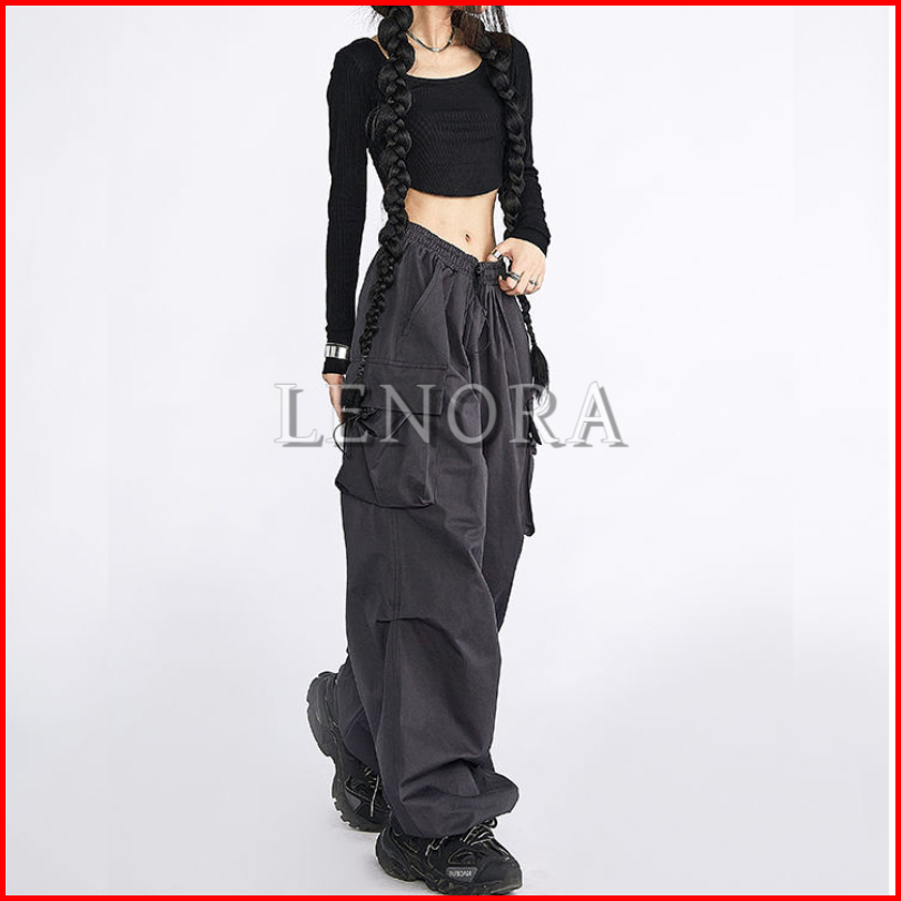 S-5xl Celana Kasual Retro Yang Serbaguna Trendi Celana Lebar Kaki Lurus Pinggang Tinggi Celana Cargo Wanita Celana Longg