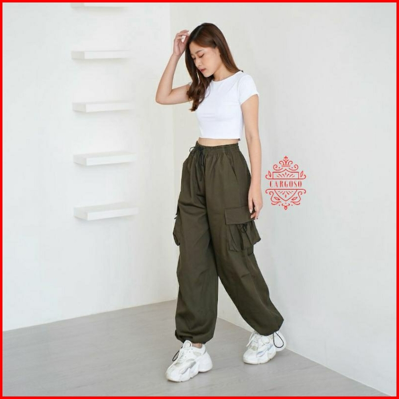 Celana Cargo Wanita Panjang Highwaist Loose Pants Wanita Korean Style Standar Jumbo Celana Gunung