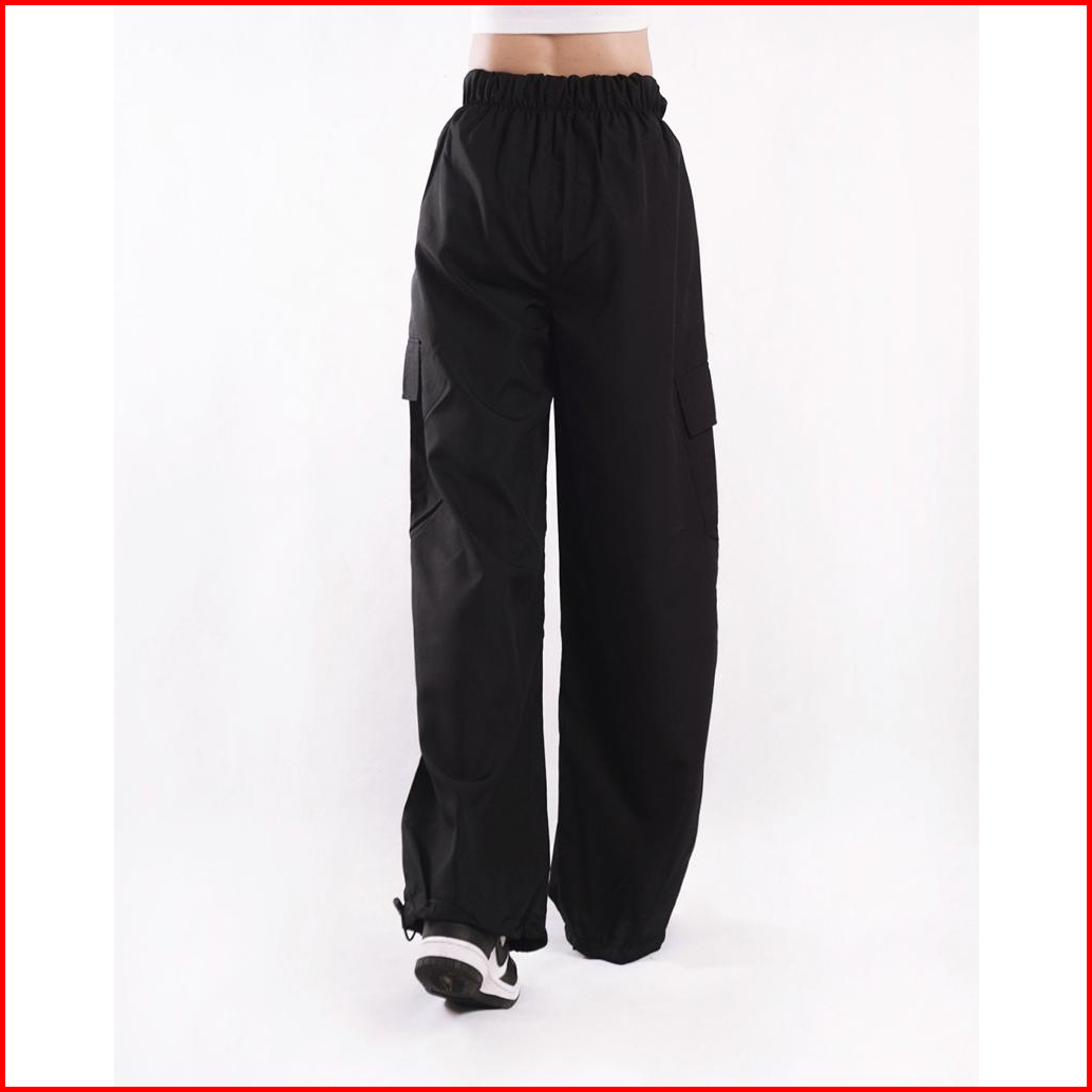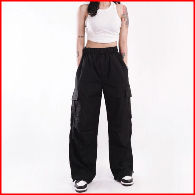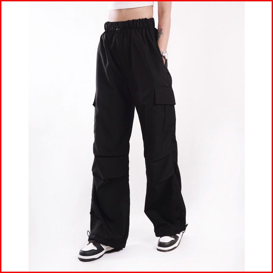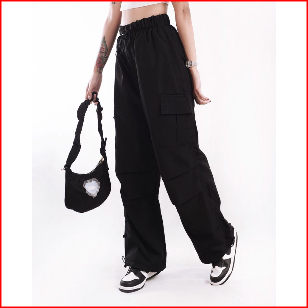 Aigo Baggy Cargo Pants - Celana Cargo Parasut Panjang Hitam Streetwear Korean Style Unisex
