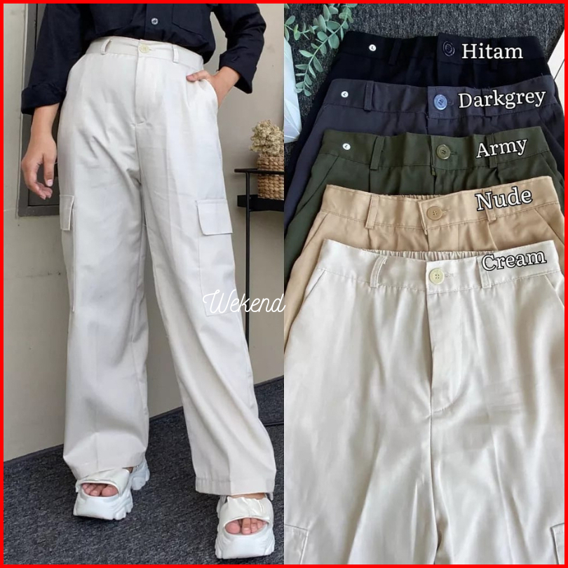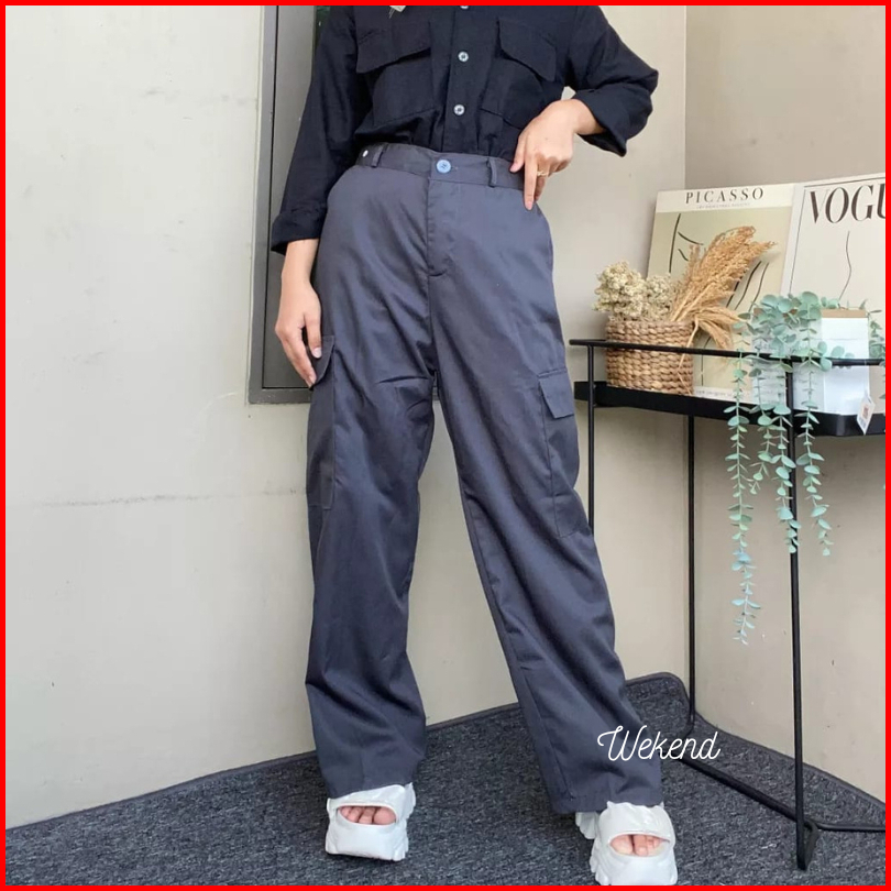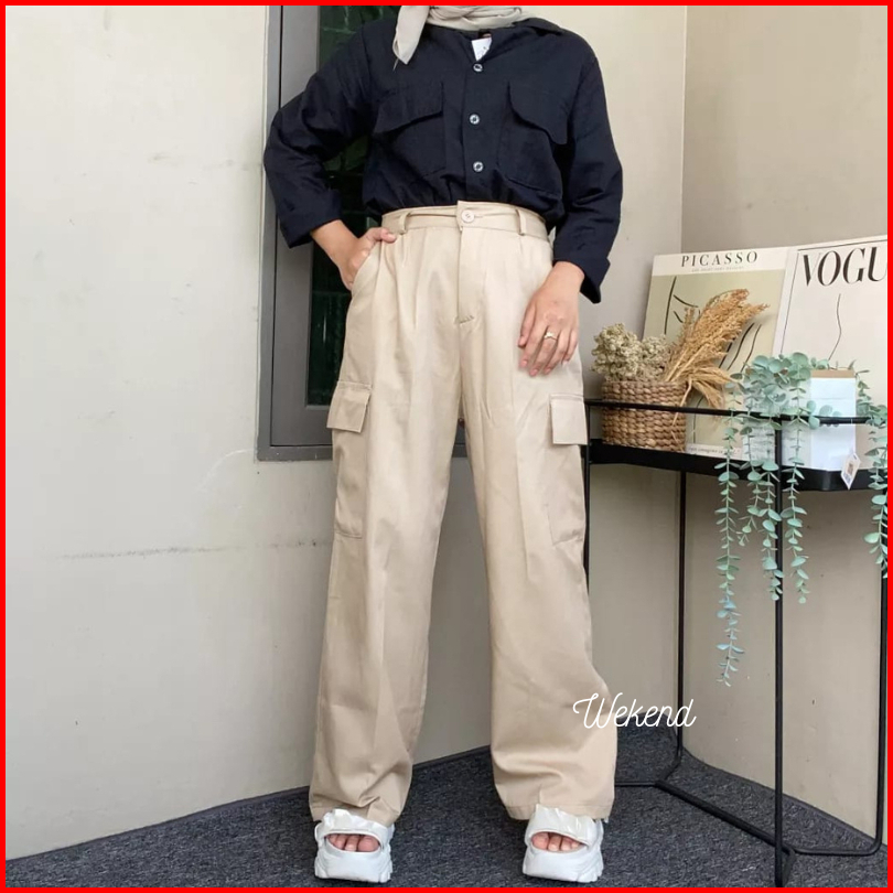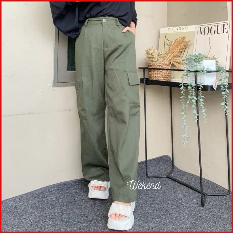 Celana Cargo Pants - Highwaist Loose Cargo - Celana Cargo Wanita