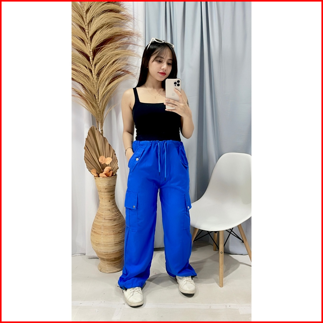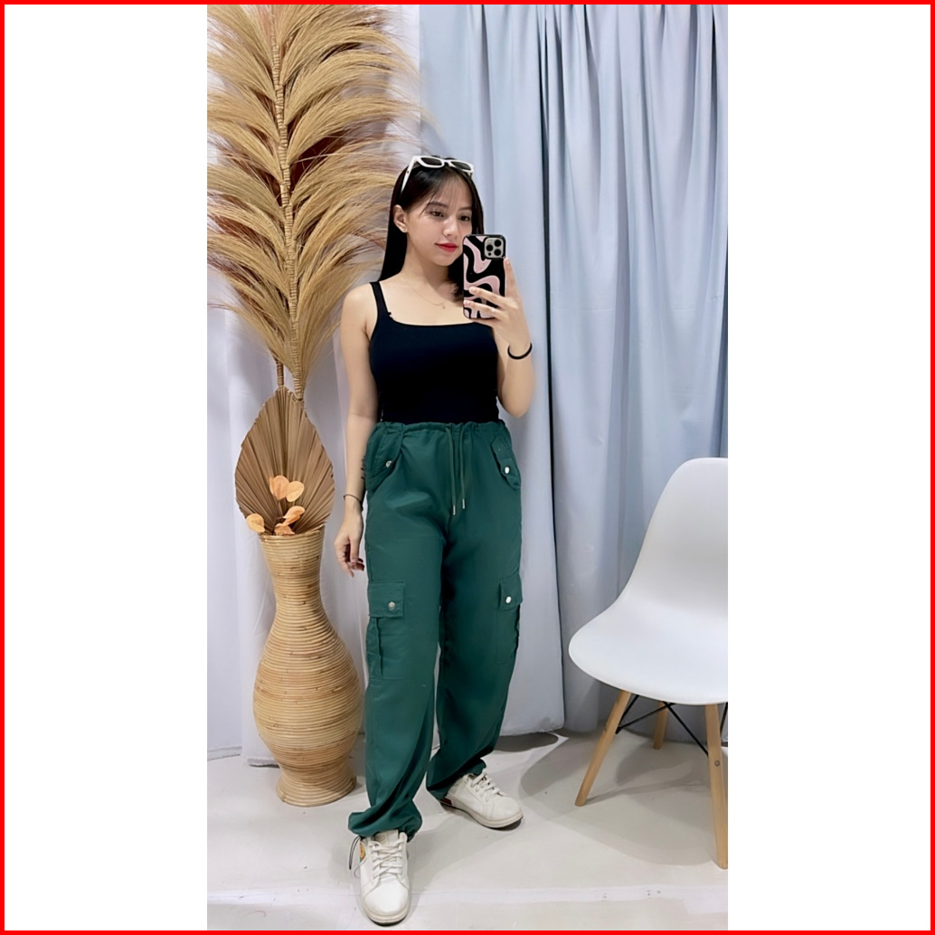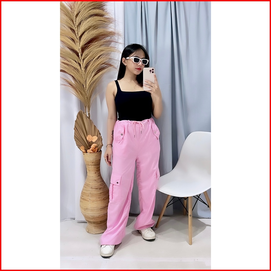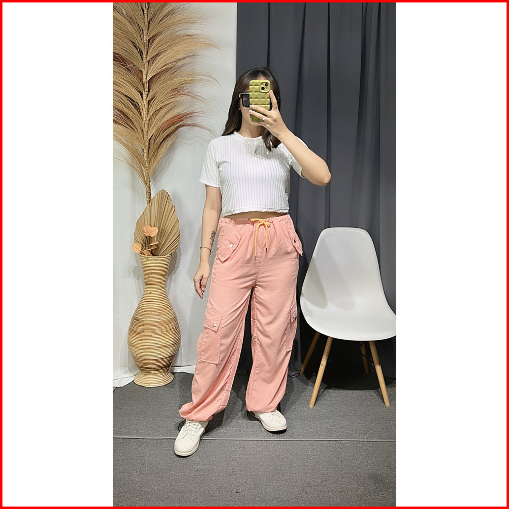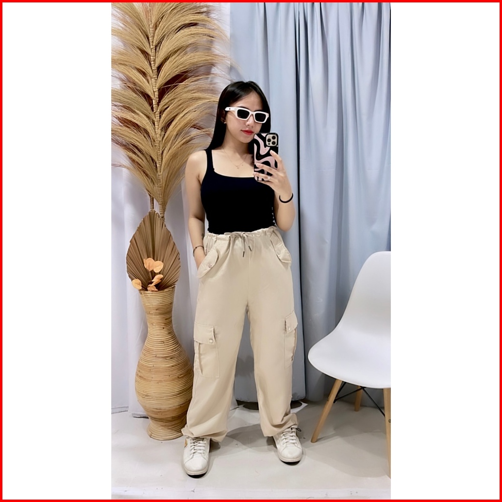 Rx Fashion - Celana Minji Cargo Katun Twistcone Loose Cargo Celana Cargo Kulot Wanita -pn