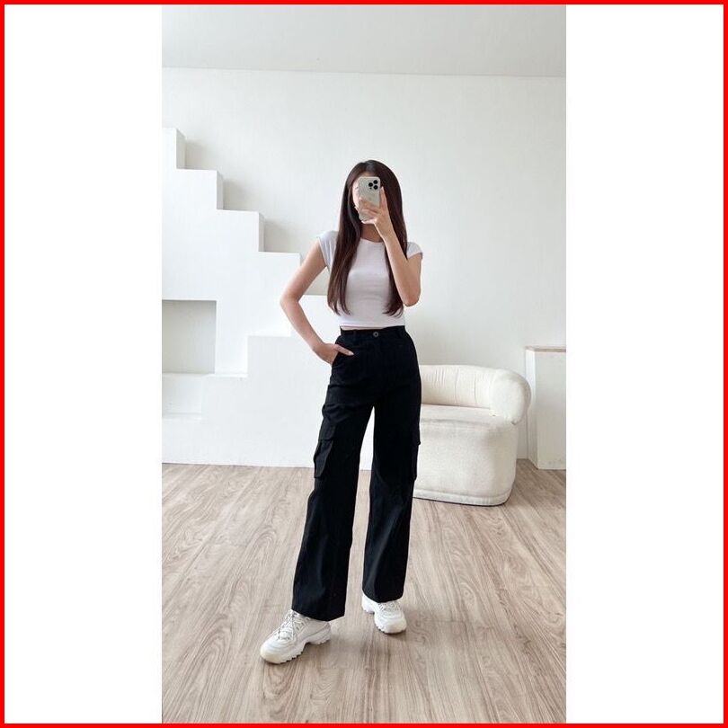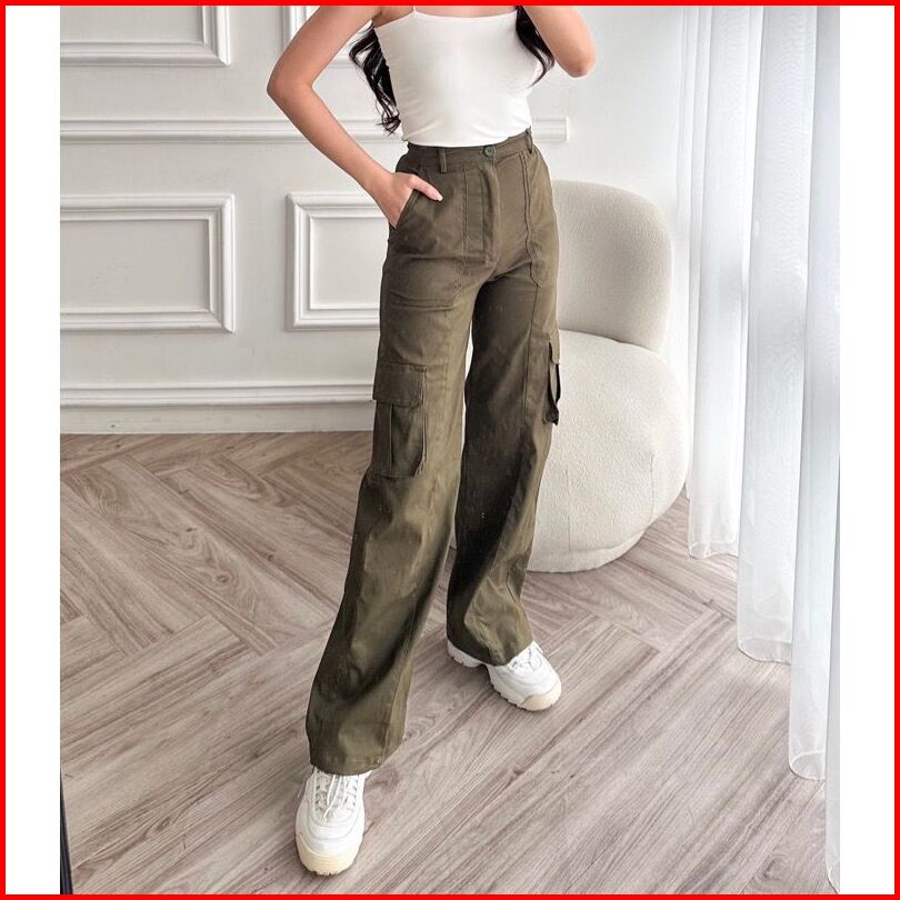 Zayida - Rora Cargo Pants - Celana Cargo Wanita Katun Twill Stretch Highwaist Loose Korean Jumbo