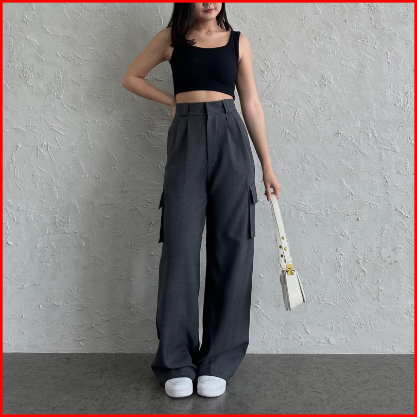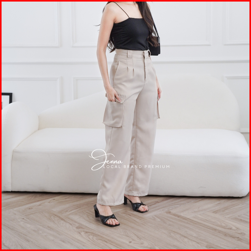 Jenna Celana Cargo Pants Panjang Kargo Wanita Jumbo Highwaist Kerja Kekinian