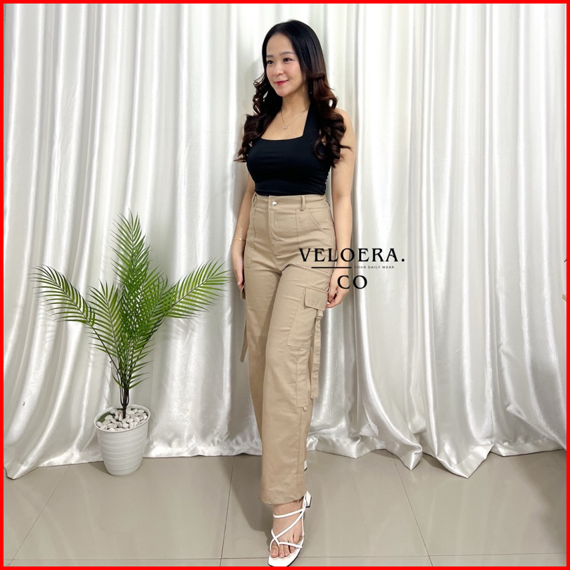 Veloera.co Lalisa - Kulot Kargo Wanita Highwaist Premium Kekinian Dengan Gesper.