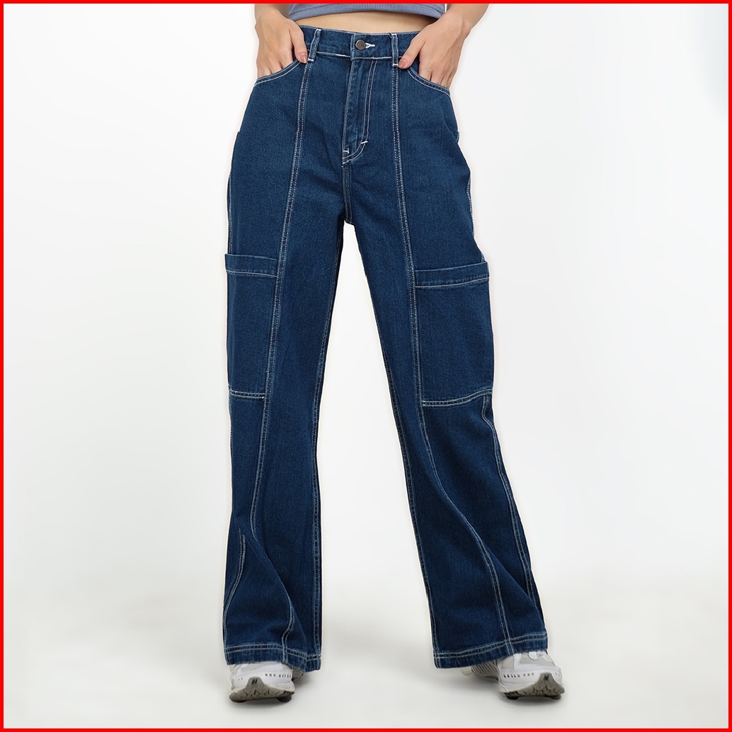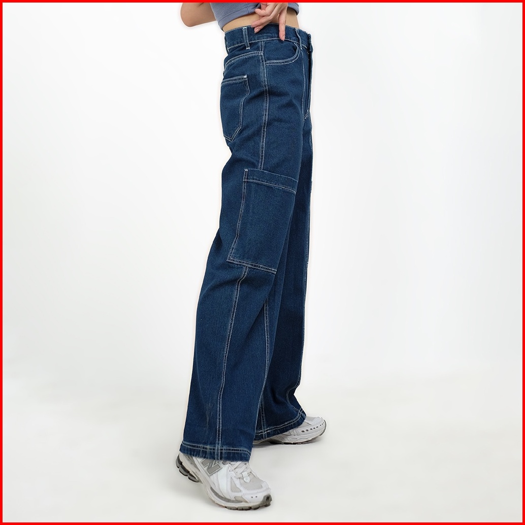Miss 80 Boehem Celana Jeans Wanita Cargo Loose