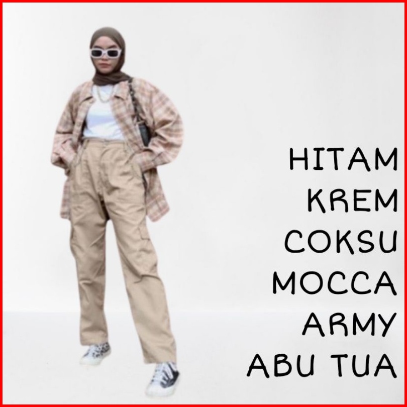 Celana Cargo Pants Panjang Wanita Fit Xl 35-75kg Bigsize Jumbo Pinggang Karet Pdl Wanita Korean Style