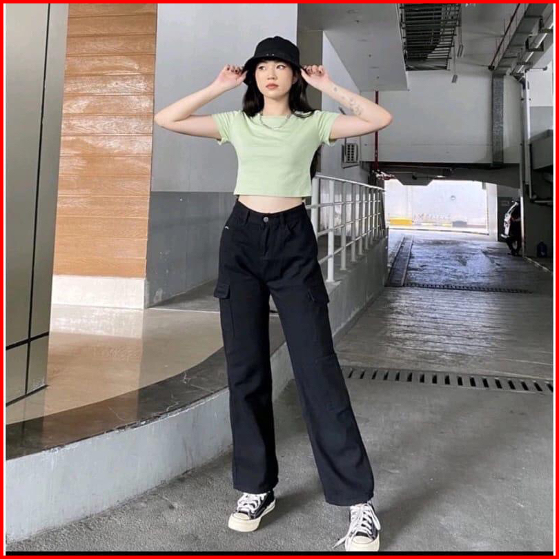 Celana Cargo Jeans Highswaist Korean Style Celana Lose Cargo Pants
