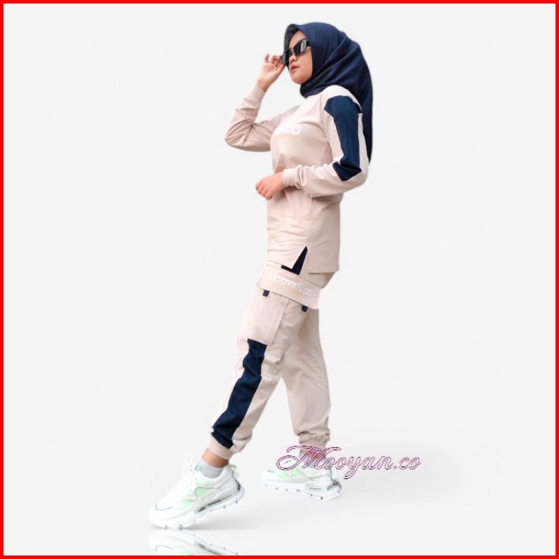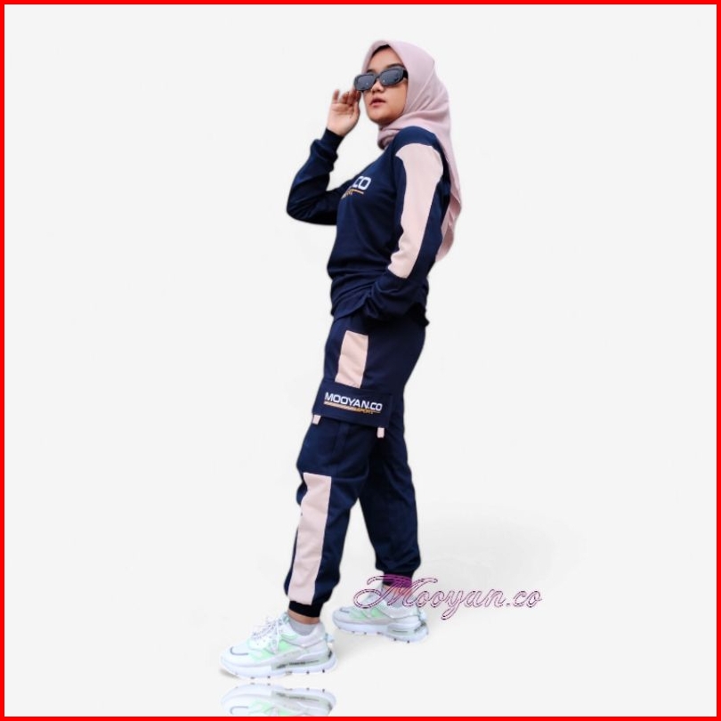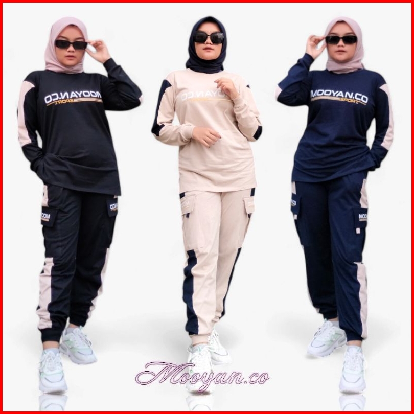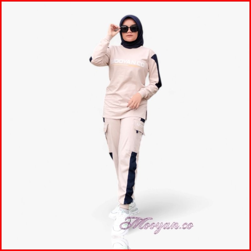 Setelan Olahraga Wanita Jumbo - Baju Olahraga Celana Cargo Wanita Muslimah - Mooyan Set 100kg