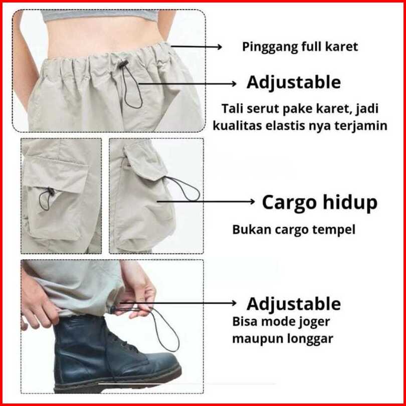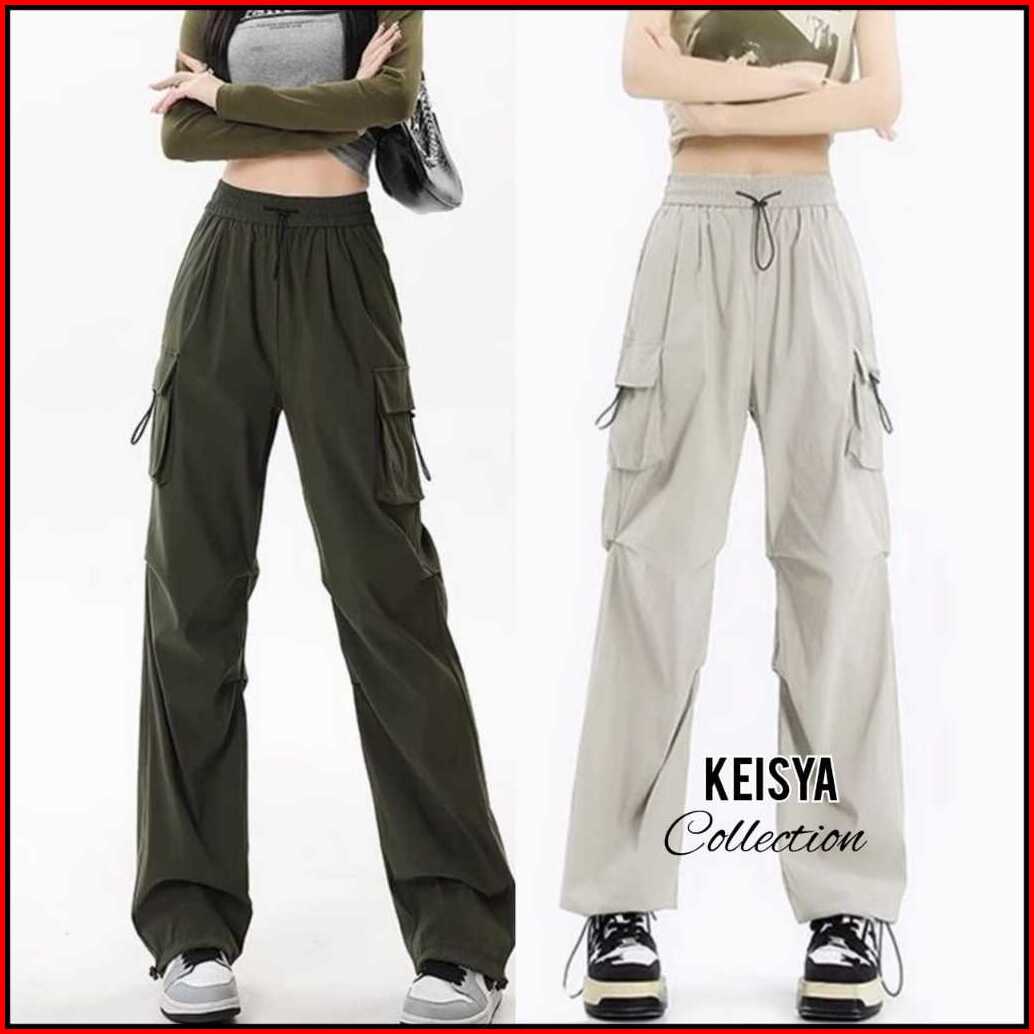 Kiya Cargo Pants Wanita Highwaist Loose Korean Style Jumbo - Celana Kargo Wanita Terbaru