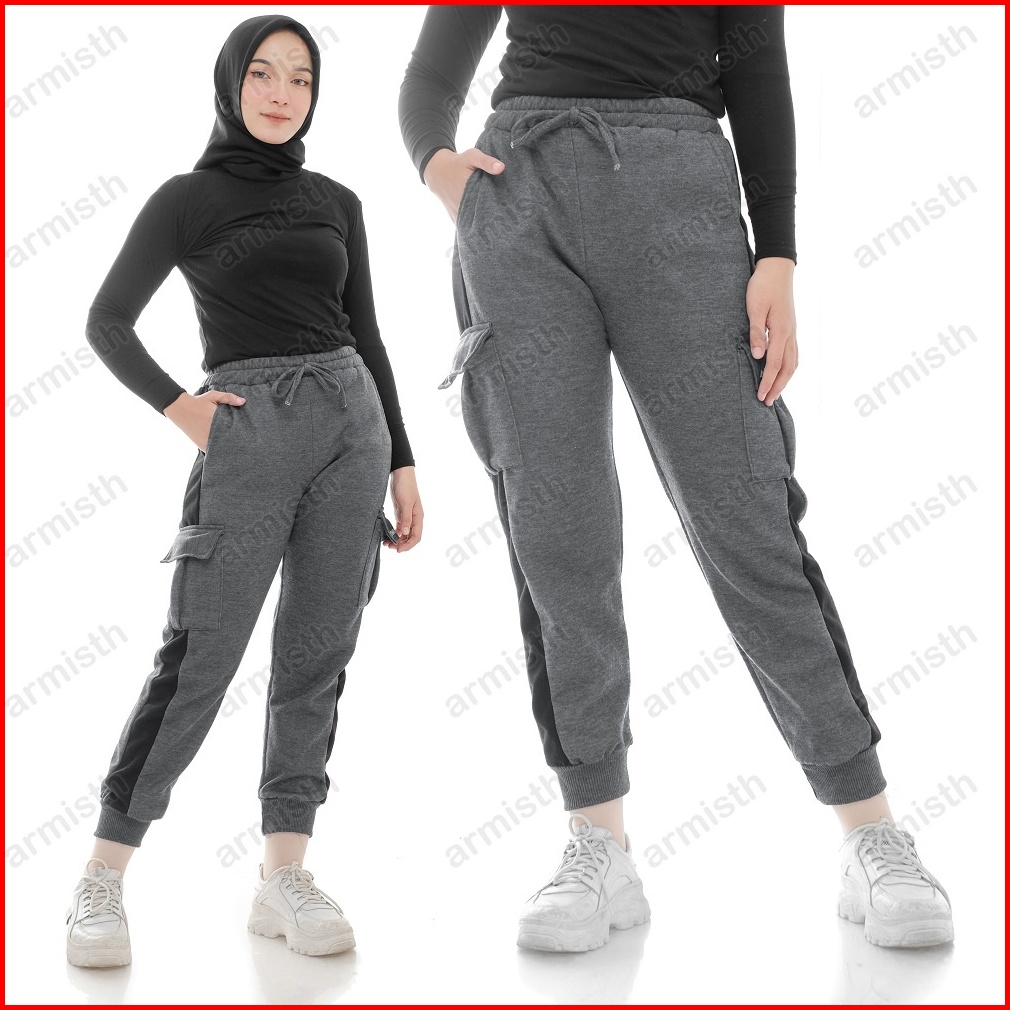 Armisth - Celana Training Joger Cargo Wanita Fleece Tebal Jogger Cargo Perempuan Premium Verona Terbaru