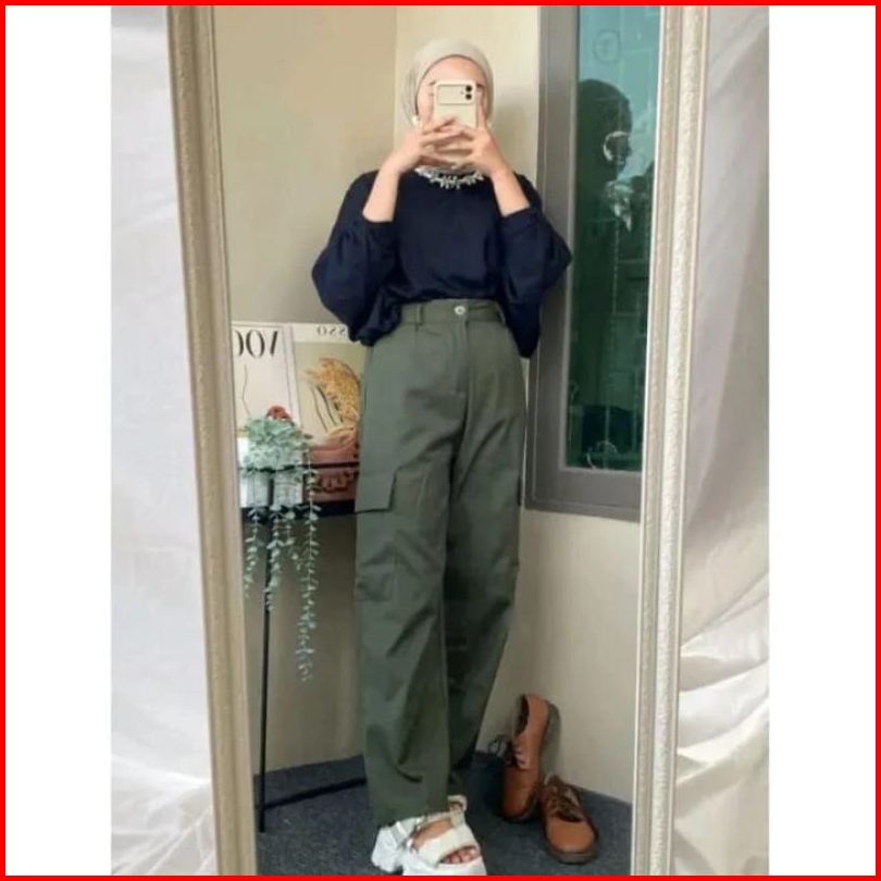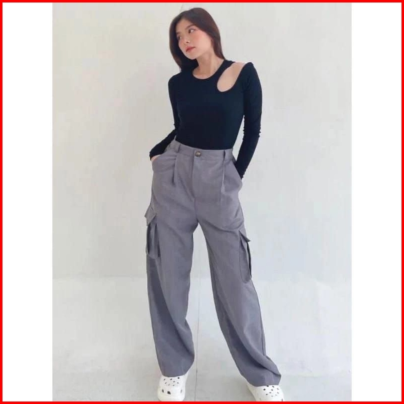 Celana Cargo Highwaist Pants Wanita Cargopremium