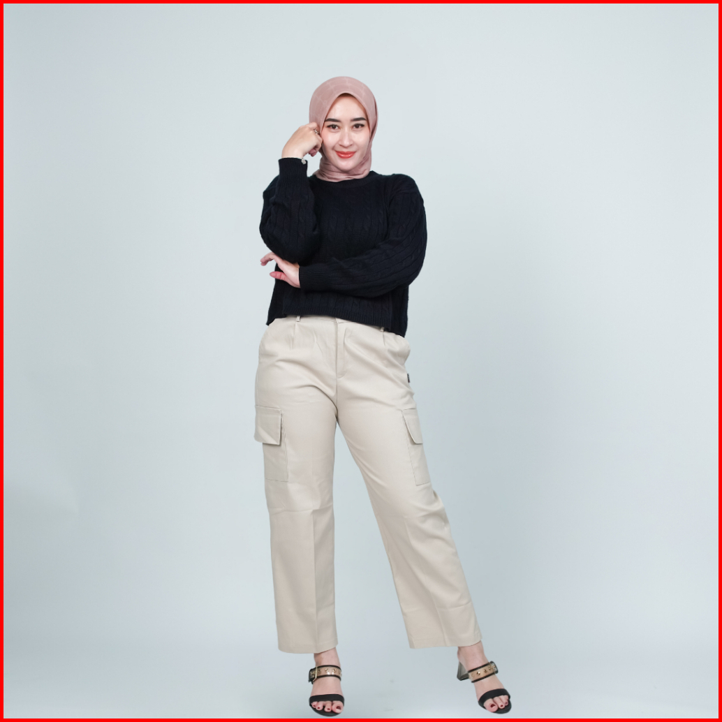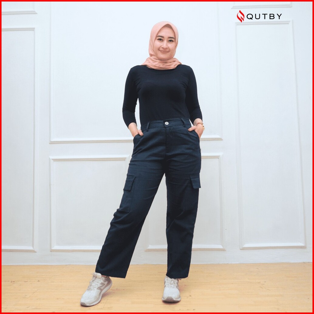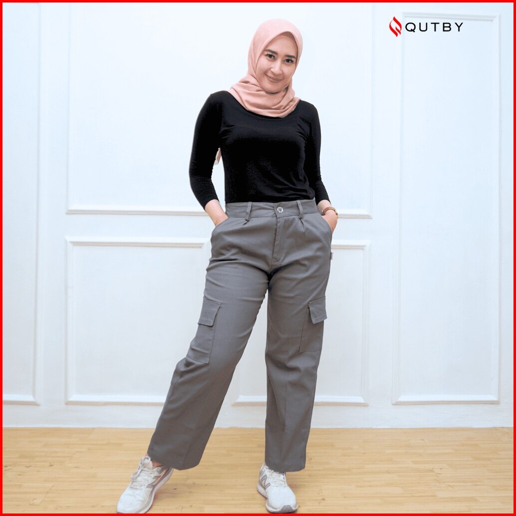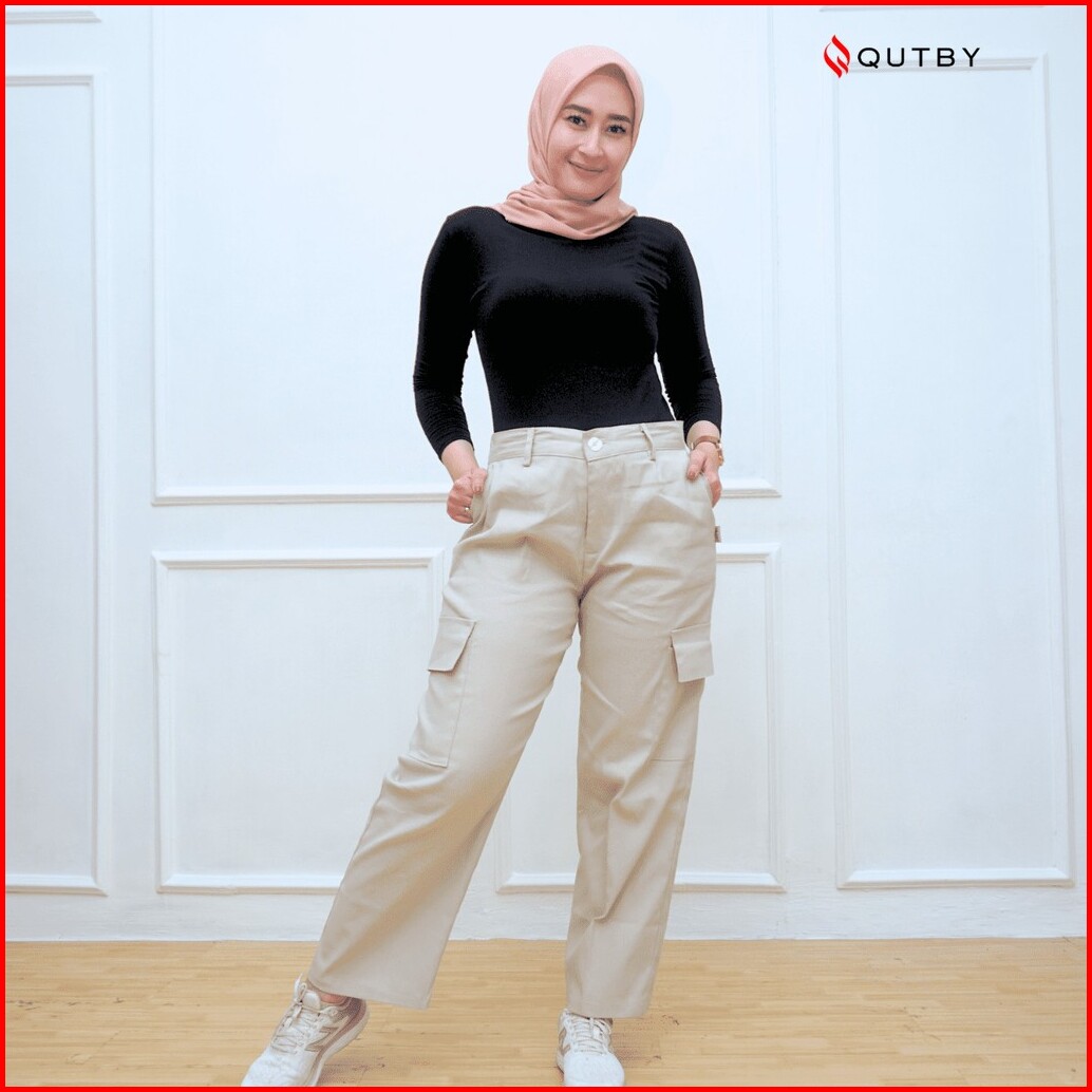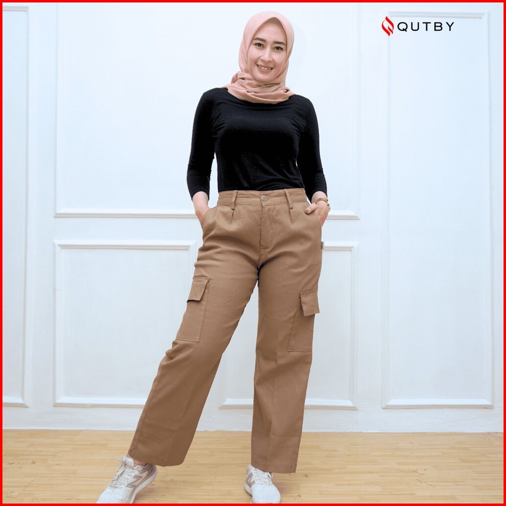 Qutby - Celana Cargo Highwaist Bahan Katun Twill Premium Celana Cargo Jumbo
