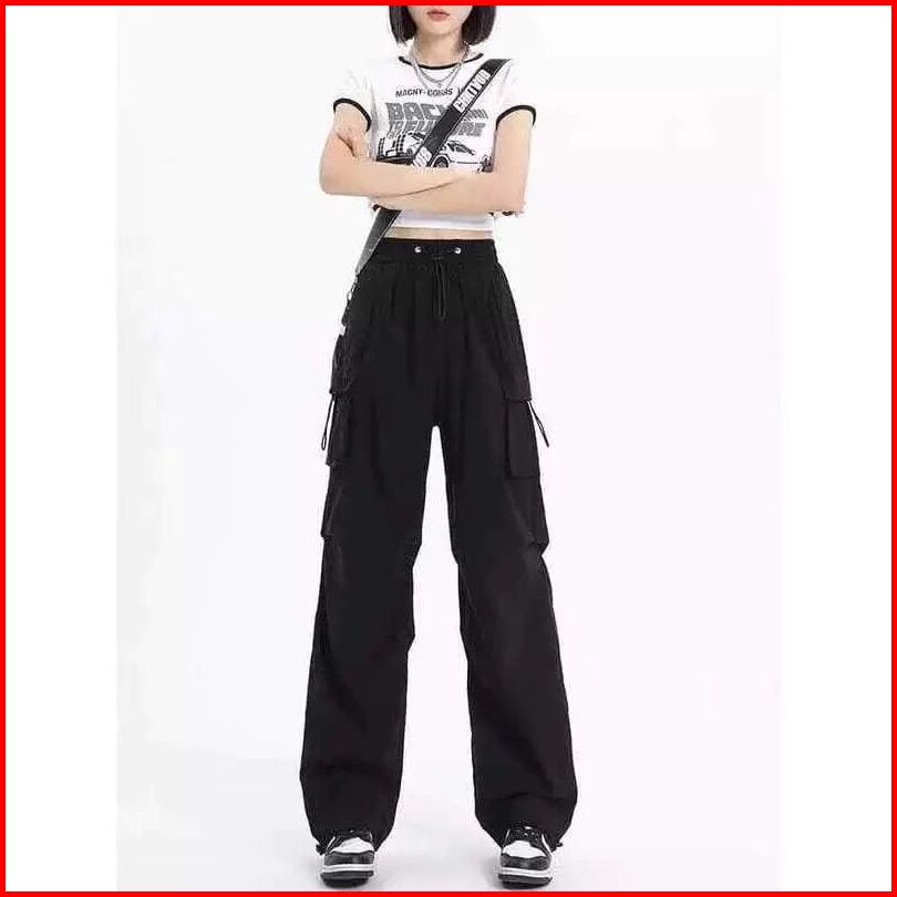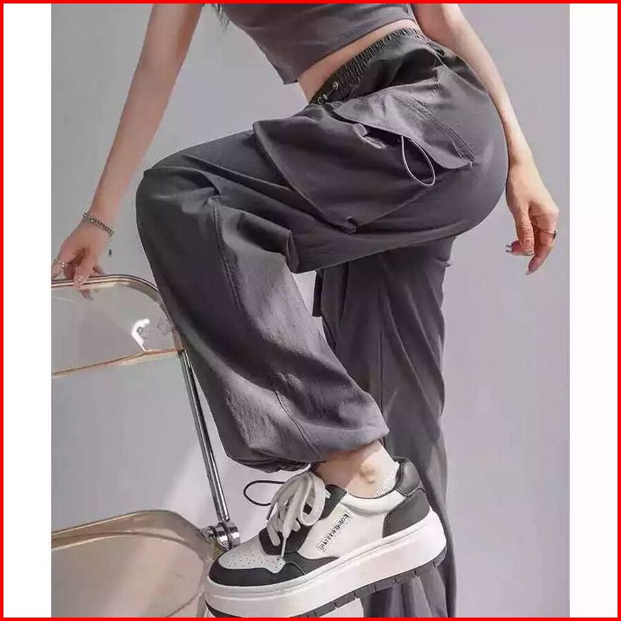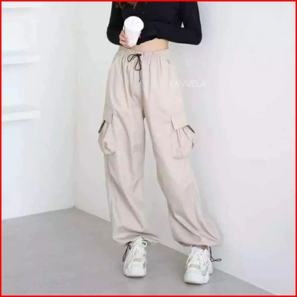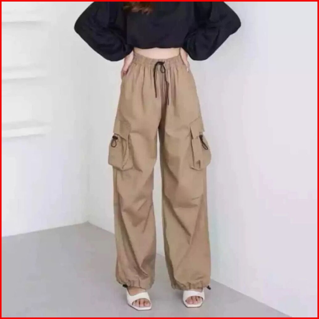 Celana Cargo Pants Wanita Highwaist Loose Korean Style Jumbo Celana Kargo Wanita Terbaru.