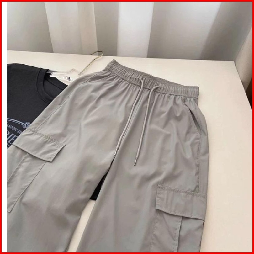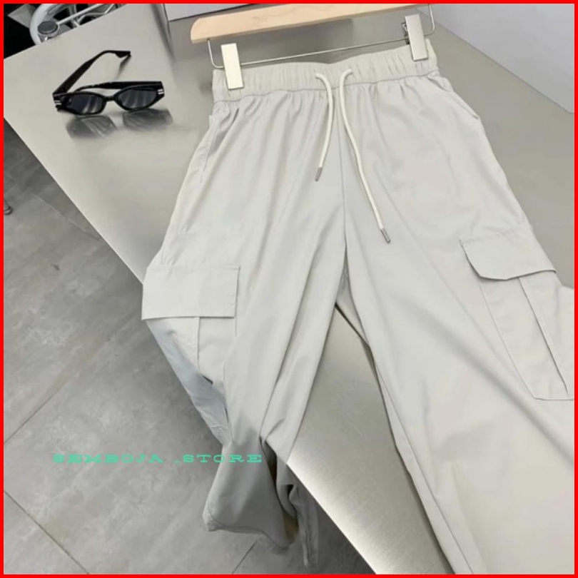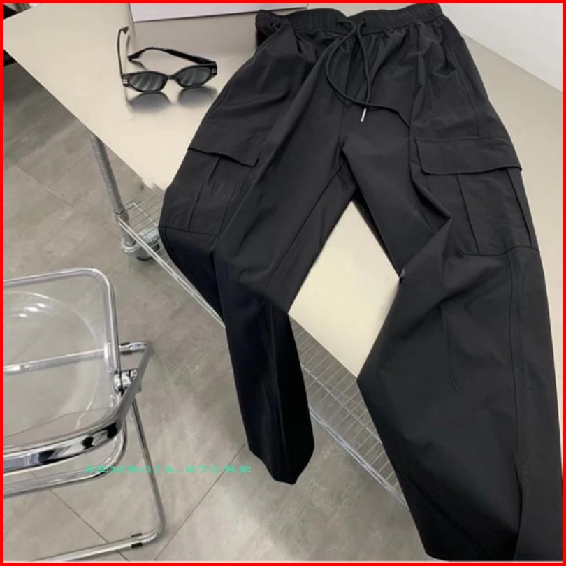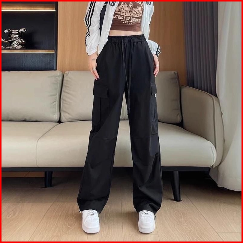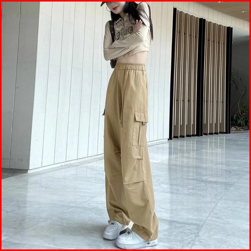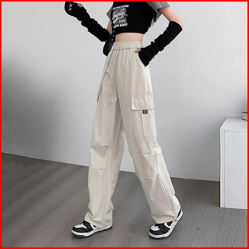 Celana Cargo Wanita Panjang Kulot Bahan Elastis Lurus Longgar Gaya Baru