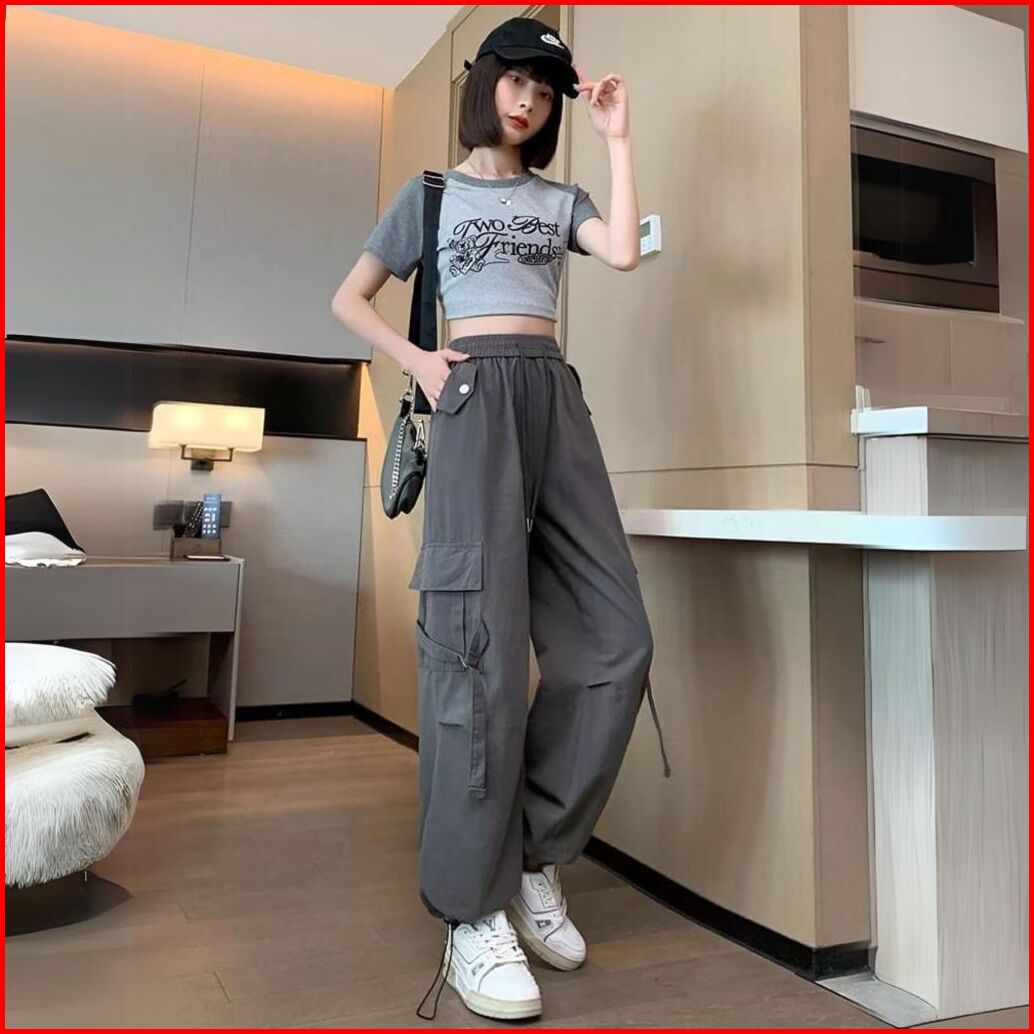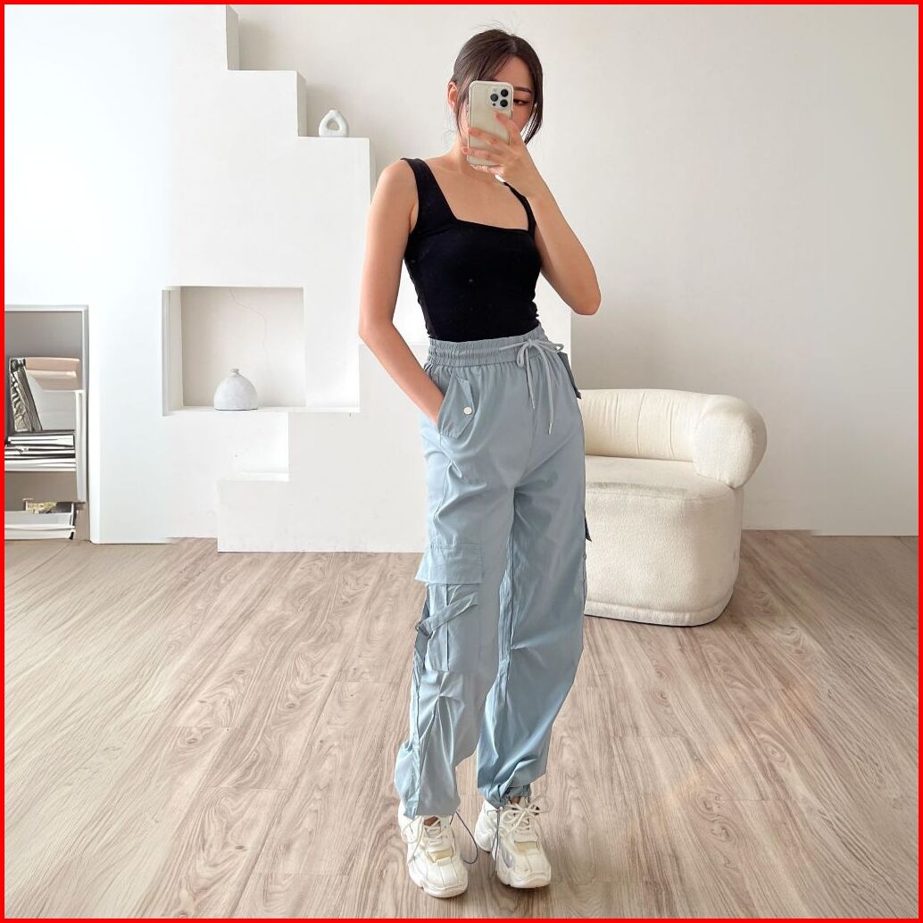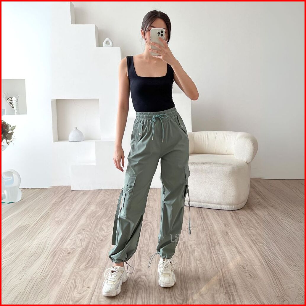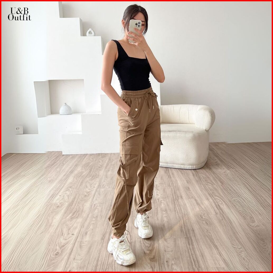 U B Outfit - 2002 Women S Cargo Pants Celana Panjang Cargo Wanita Highwaist Loose Premium Stretchy