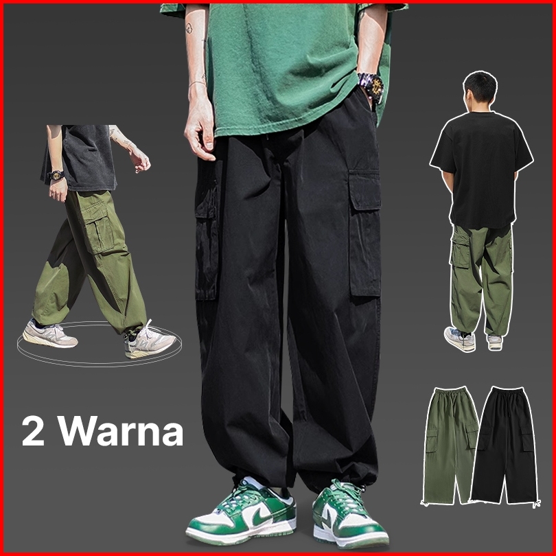 Celana Cargo Panjang Sweatpants Baggy Banyak Kantong Fashion Unisex Cargo Panjang
