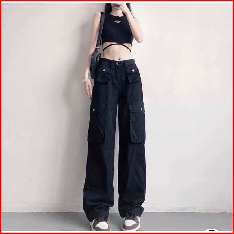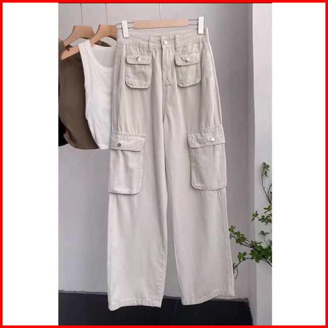 Celana Panjang Hw Cargo Wanita Jeans Korean Style - Celana Jeans Cargo Wanita Premium Original Real