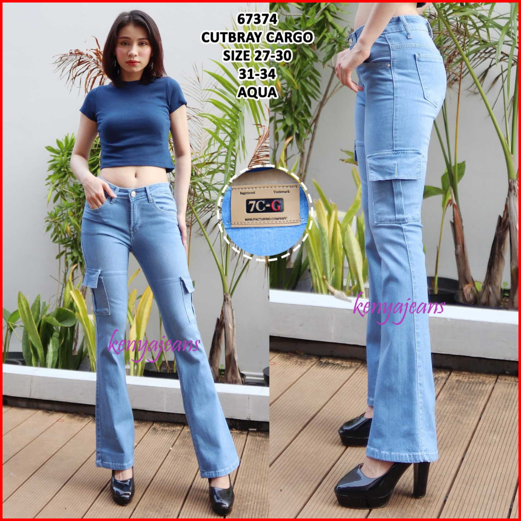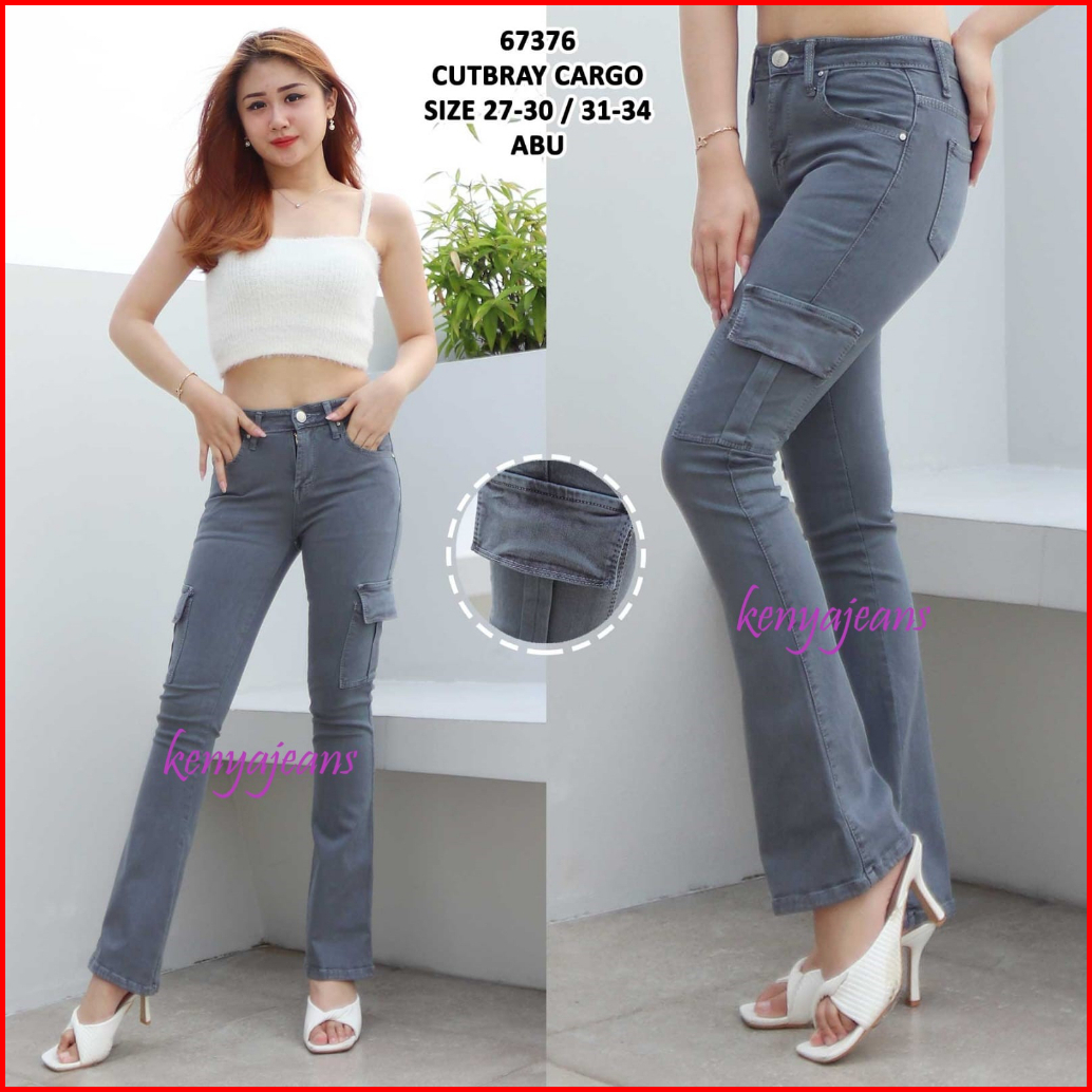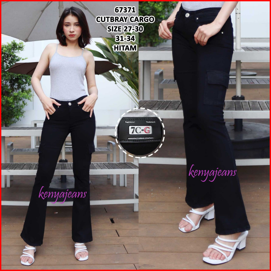 7c-g Celana Jeans Premium Cutbray Kargo Bootcut Cargo Big Size 7 Warna 27-34