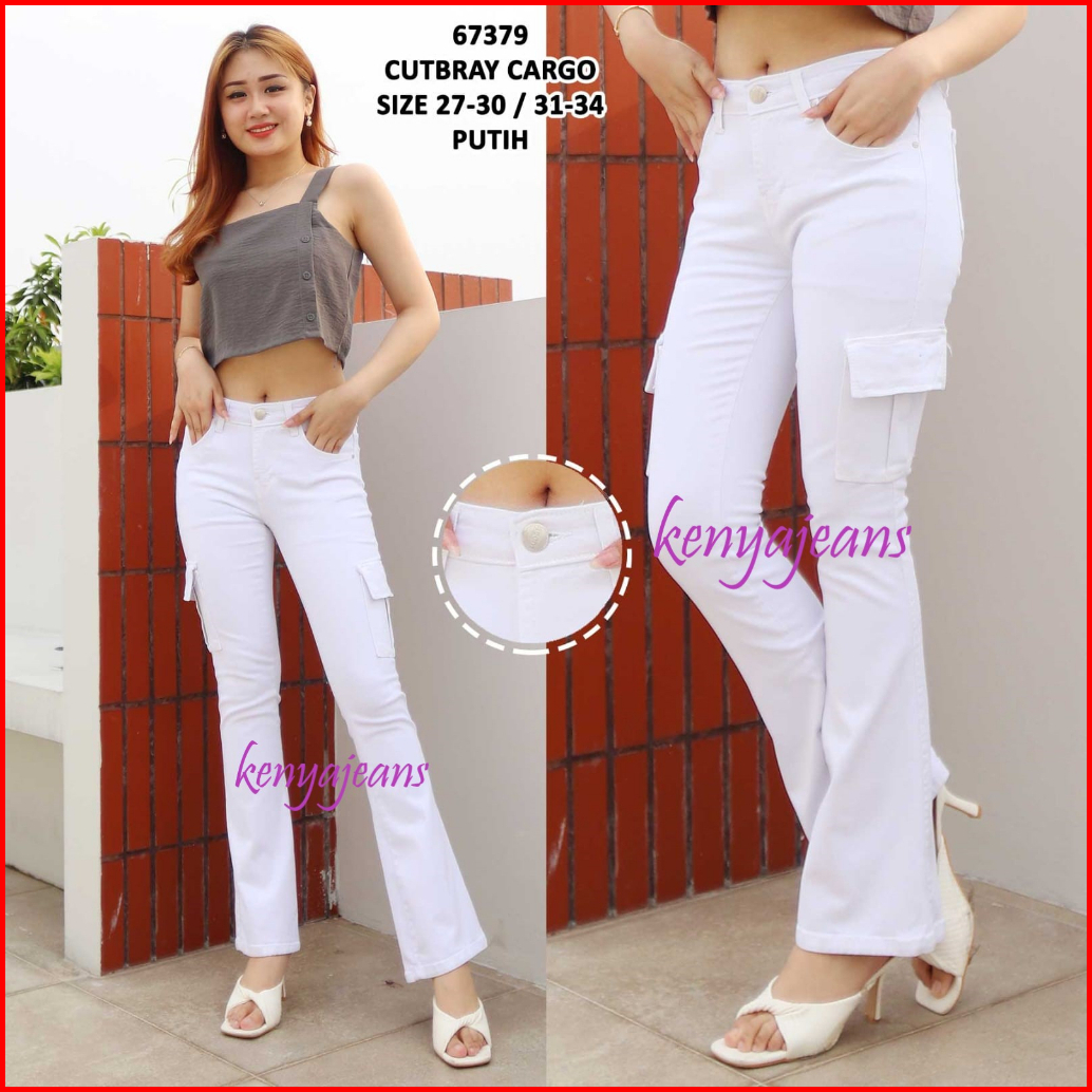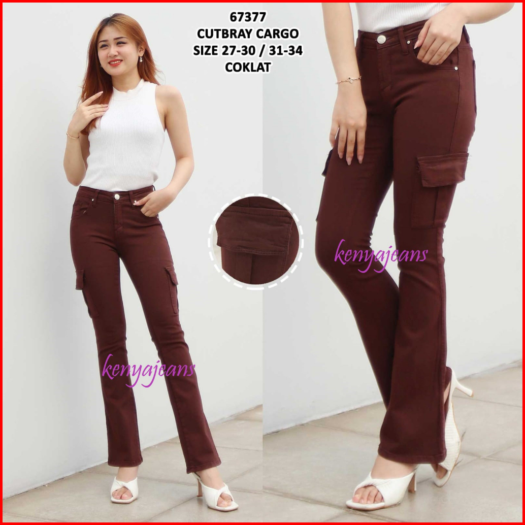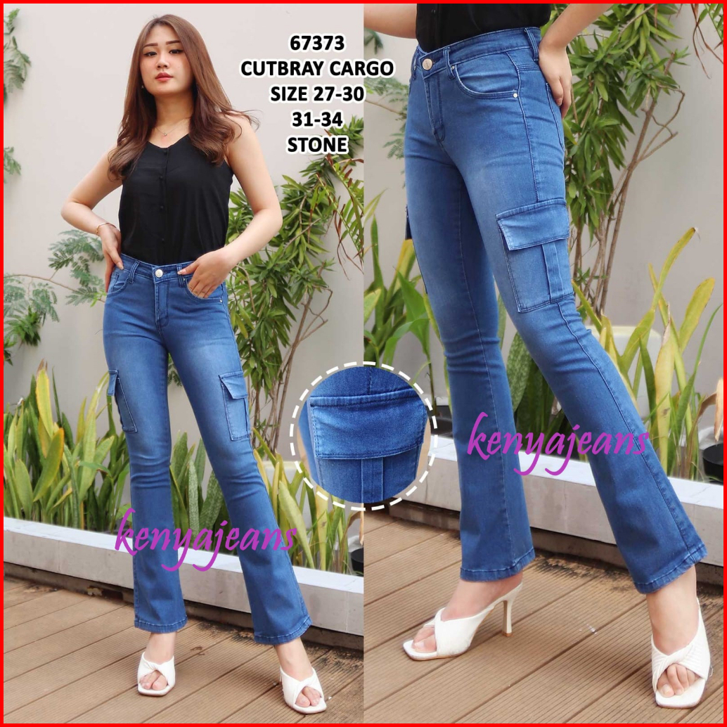 7c-g Celana Jeans Premium Cutbray Kargo Bootcut Cargo Big Size 7 Warna 27-34