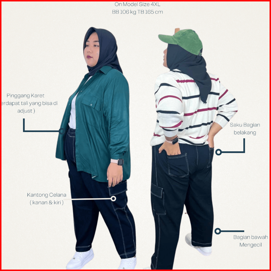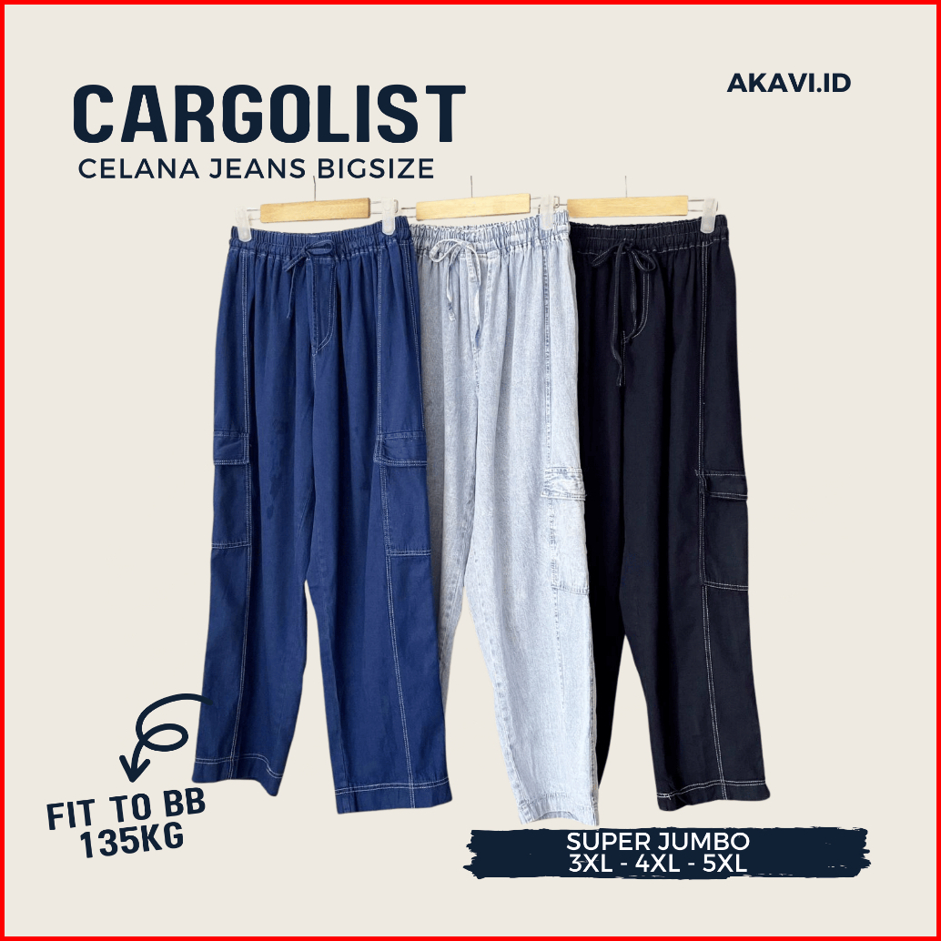 Akavi - Carlist Cargo List Bigsize Jeans Super Jumbo Celana Oversize 3xl 4xl 5xl