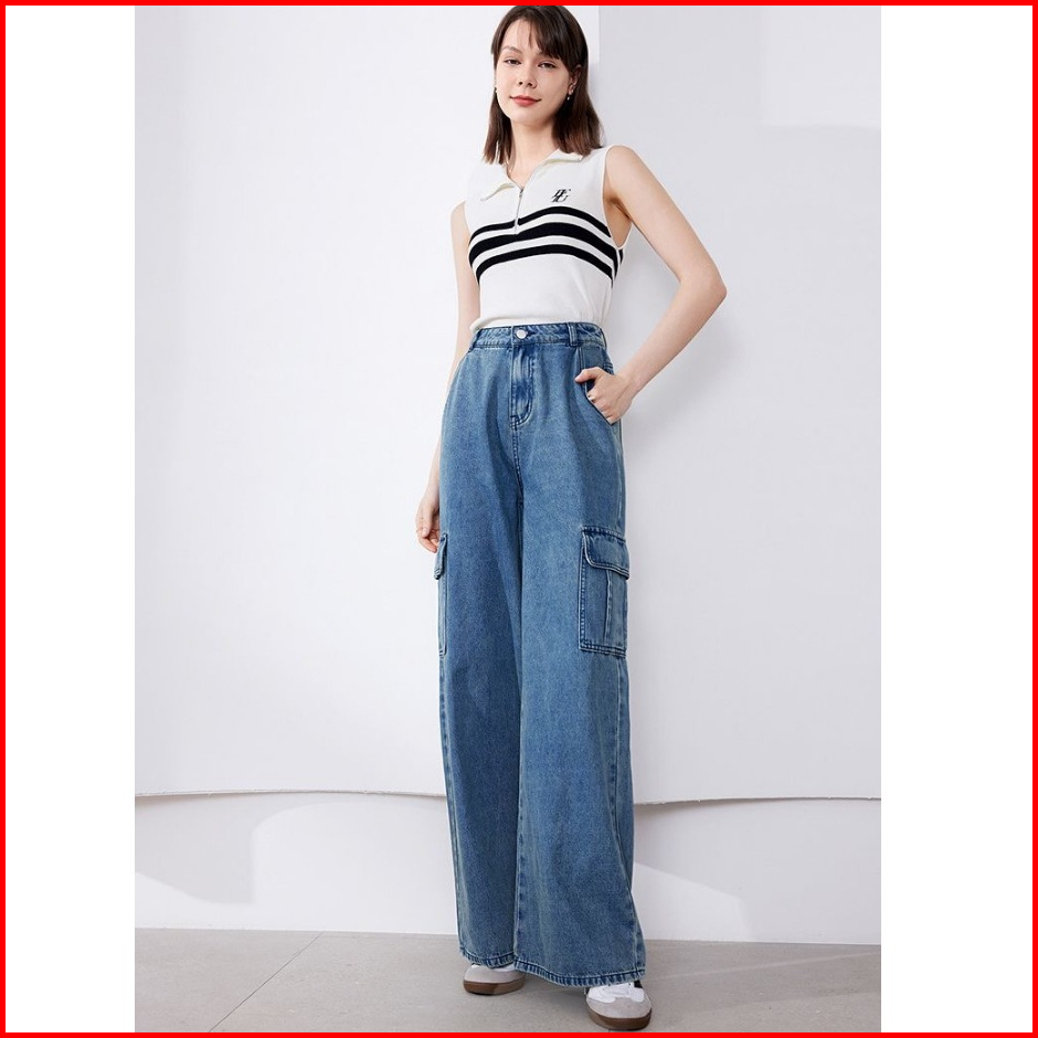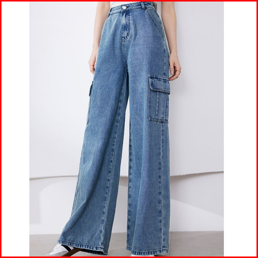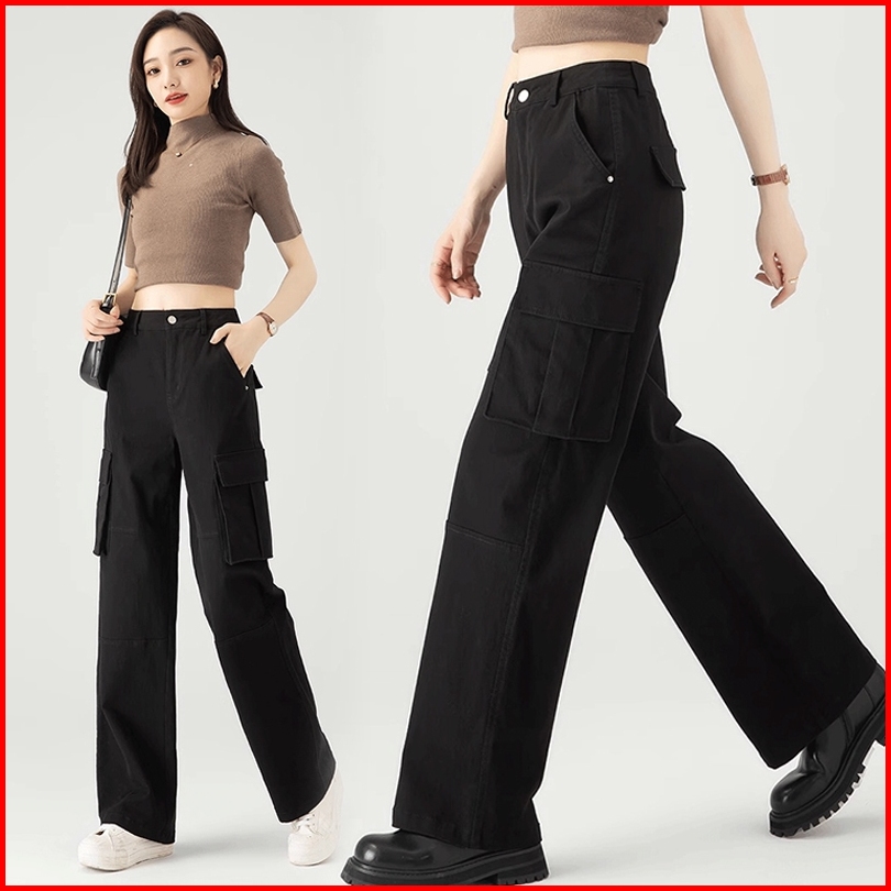 Keygirl Original Beberapa Saku Cargo Jeans Wanita Highwaist Kekinian Highwaist Loose Big Size Jumbo 5xl New Jeans