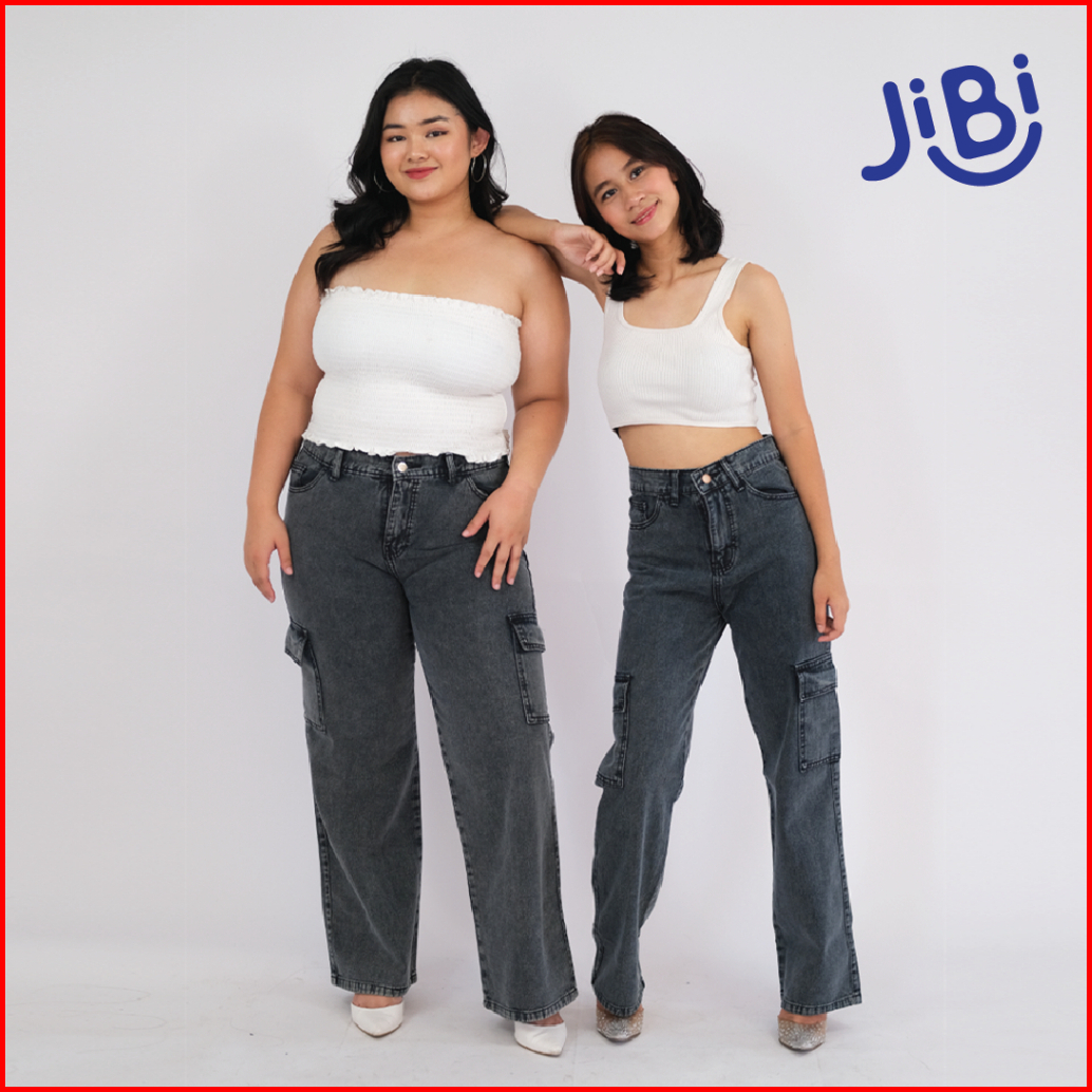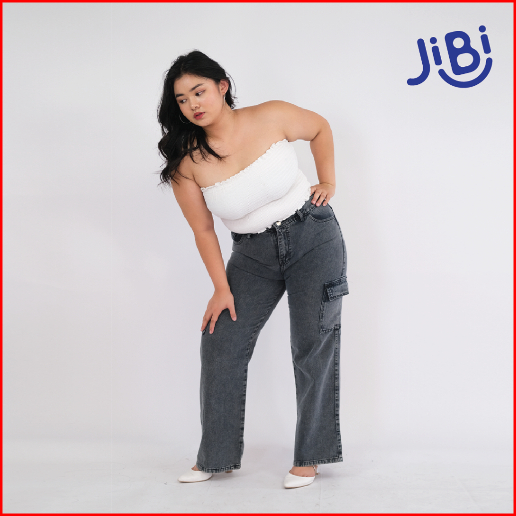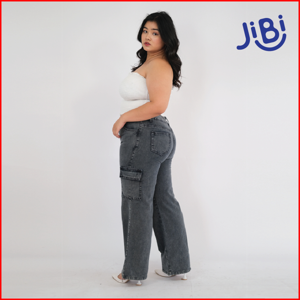 Jibi - Invincible Cargo Jeans - Snowgrey - Kulot Jeans - Big Size Available