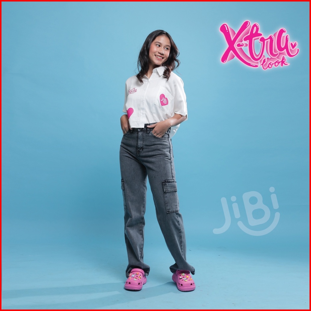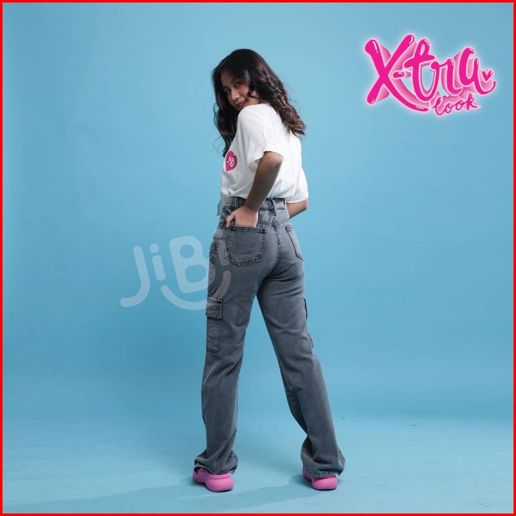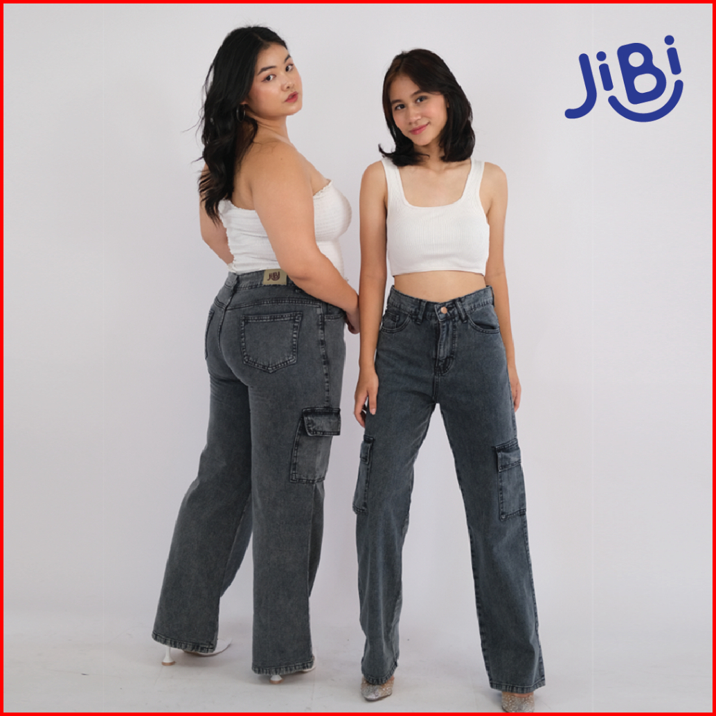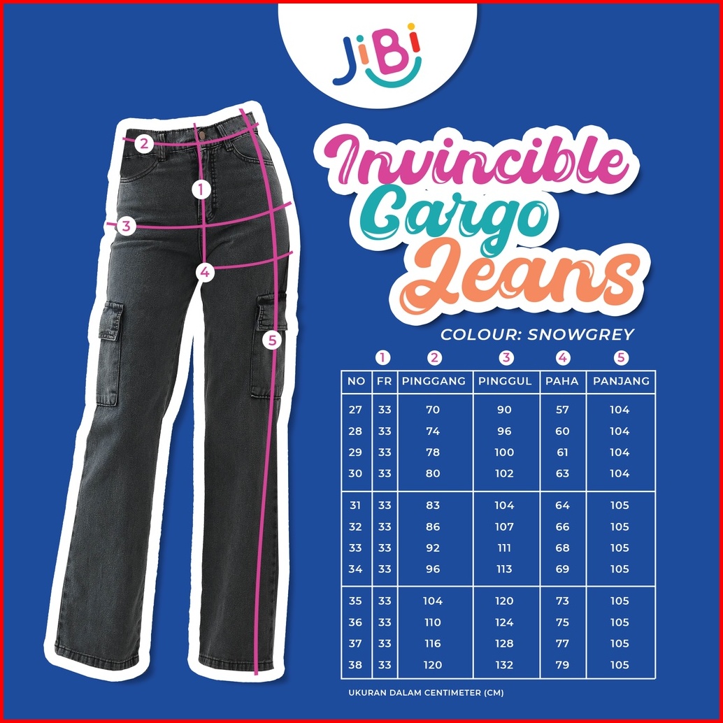 Jibi - Invincible Cargo Jeans - Snowgrey - Kulot Jeans - Big Size Available